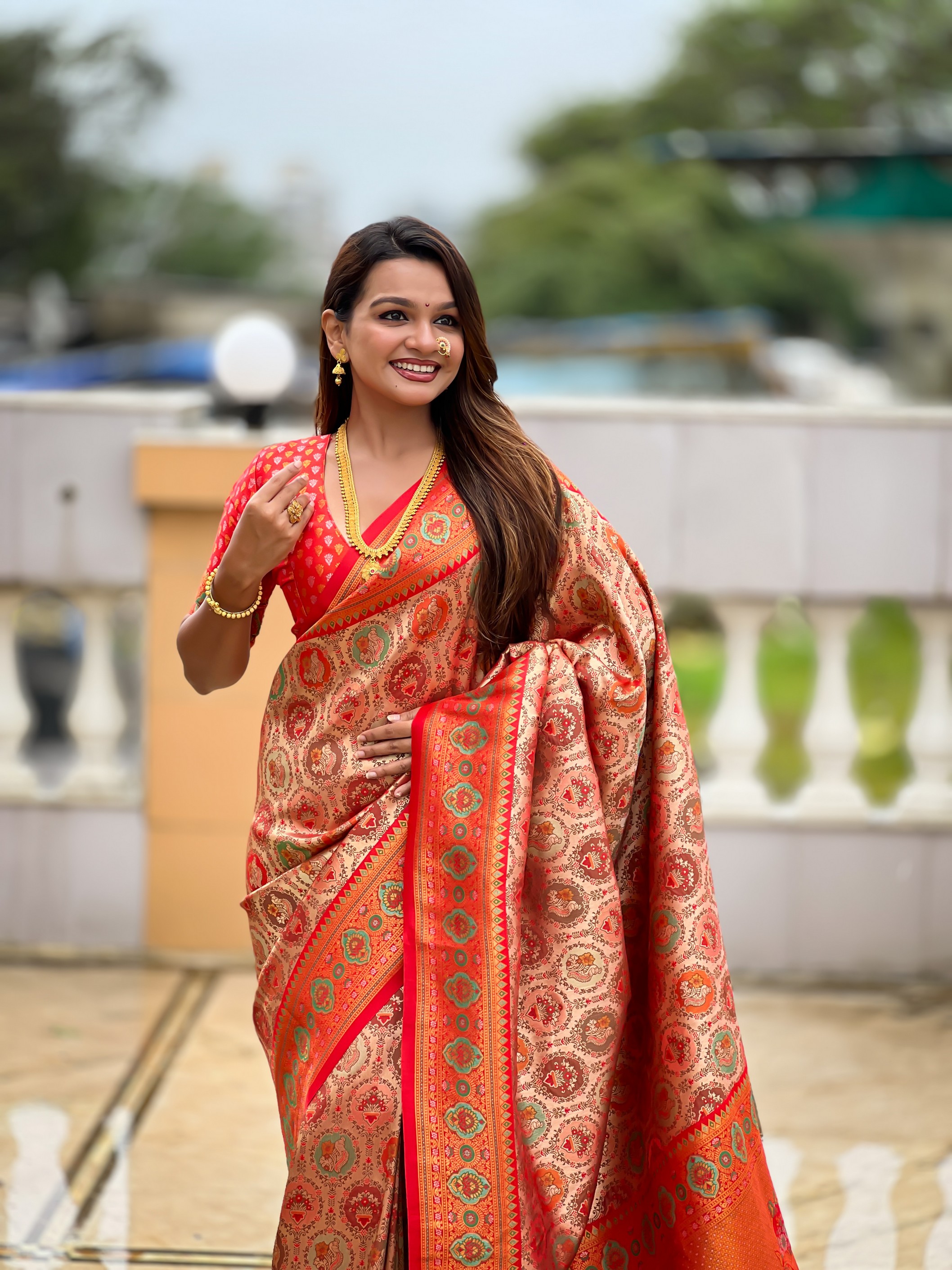 Red Color Kanjivaram Silk Woven Designer Graceful Partywear Saree