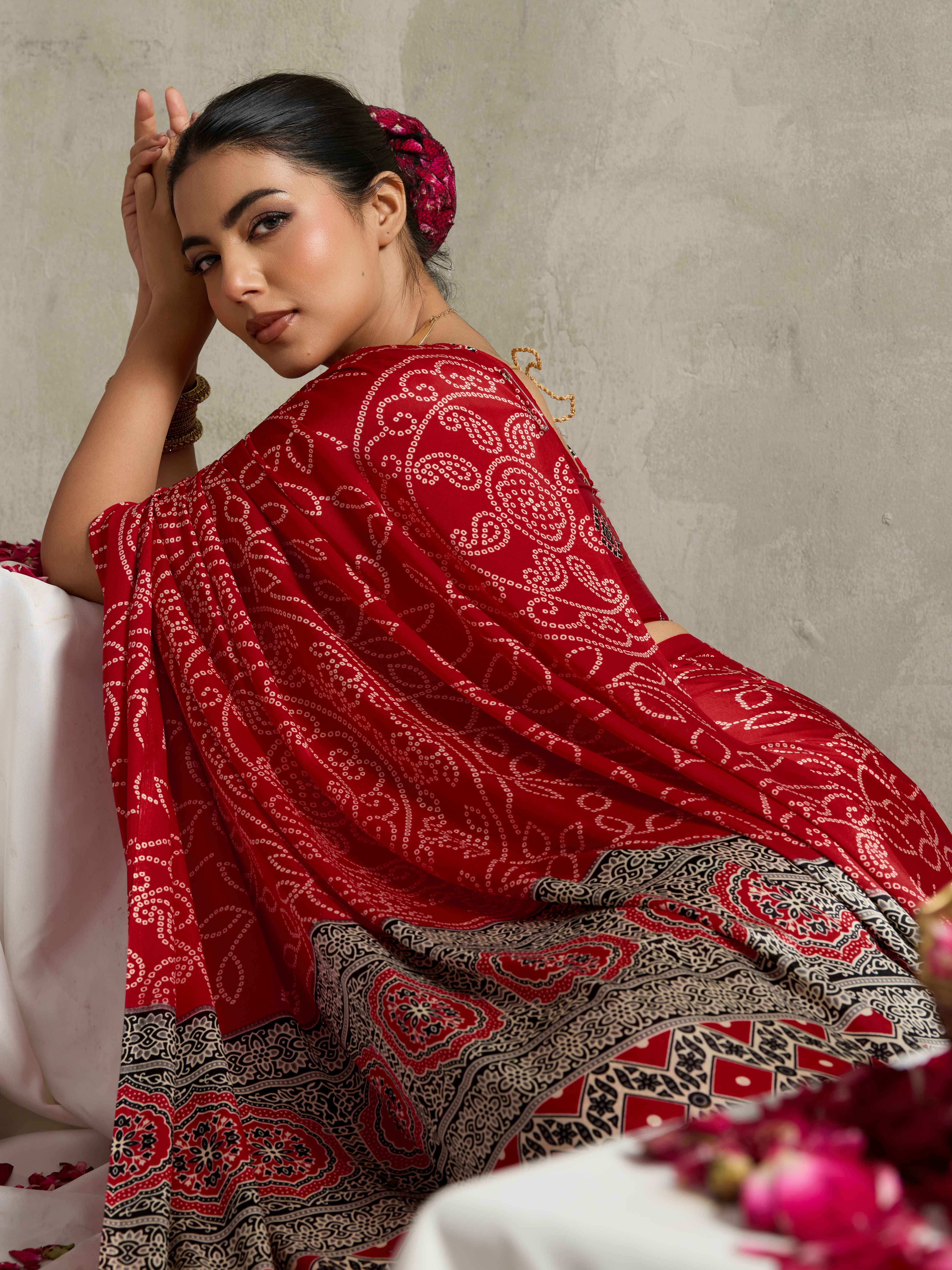 Red Color Rich Looks Designer Bandhani Printed Elegant Festive Saree