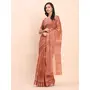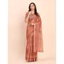 Rust Color Linen Cotton fabric Woven Border Saree With Smart Print Designer Looks
