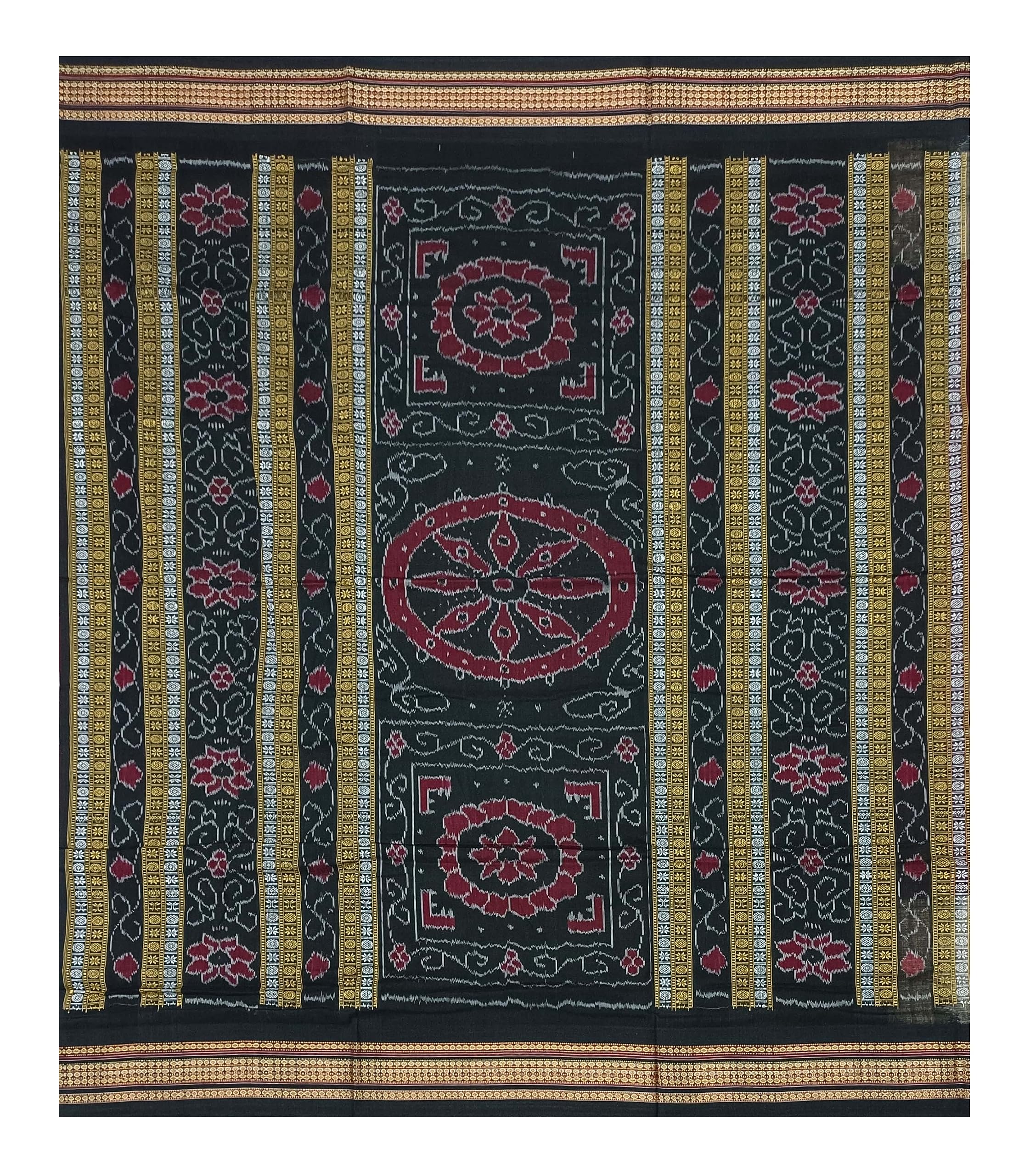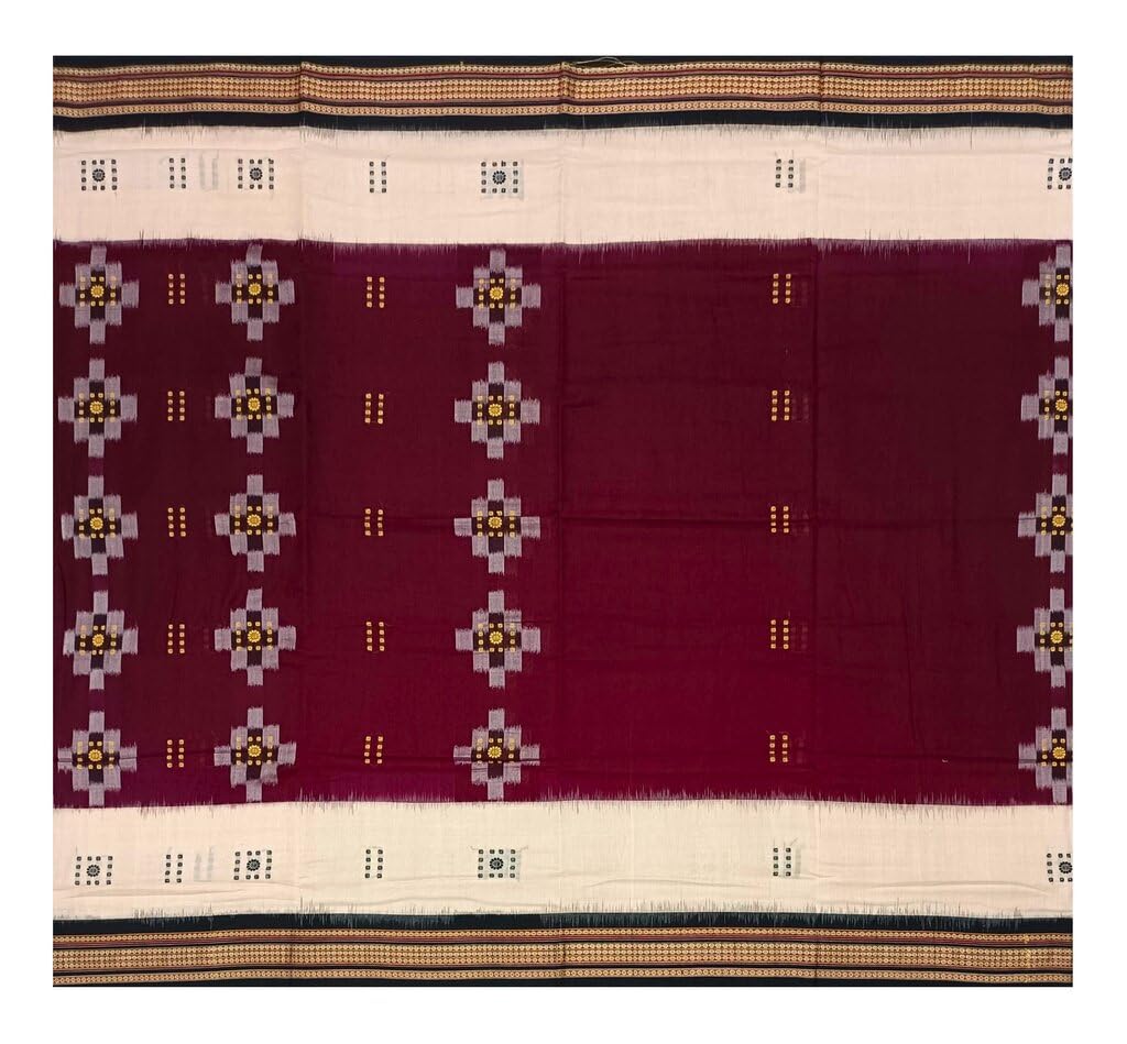 HomeFashionSareeSAMBALPURI BANDHA CRAFT sambalpuri bomkai cotton saree with blouse piece(Pasapali design in maroon light peach and black colors combination)