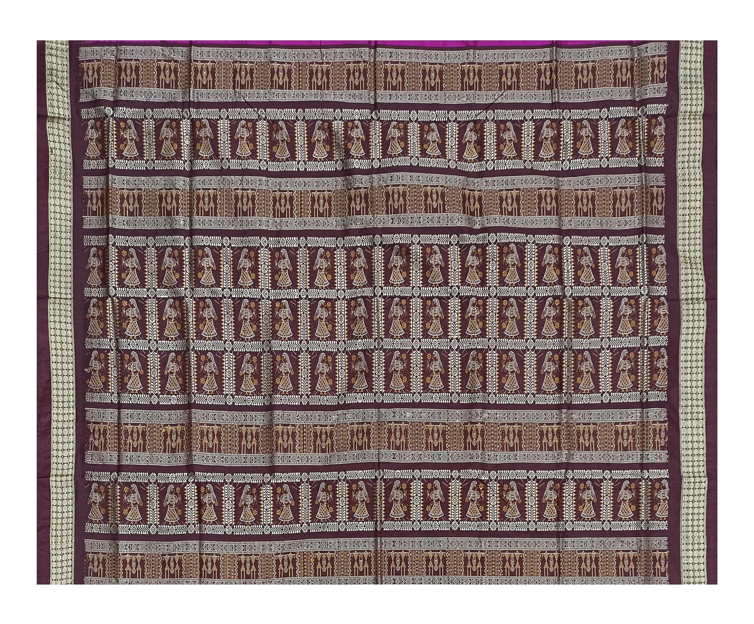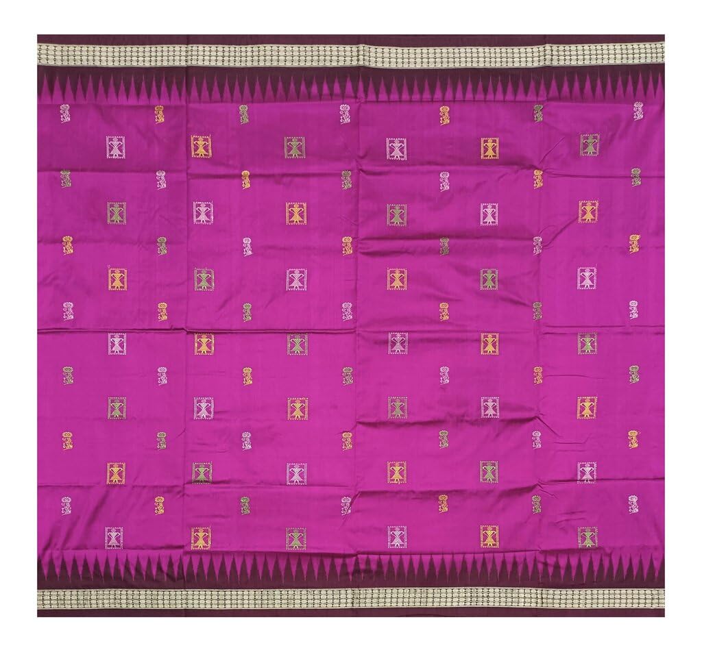 SAMBALPURI BANDHA CRAFT sambalpuri bomkai silk saree with blouse piece(Doll and flower motifs in magenta color base)