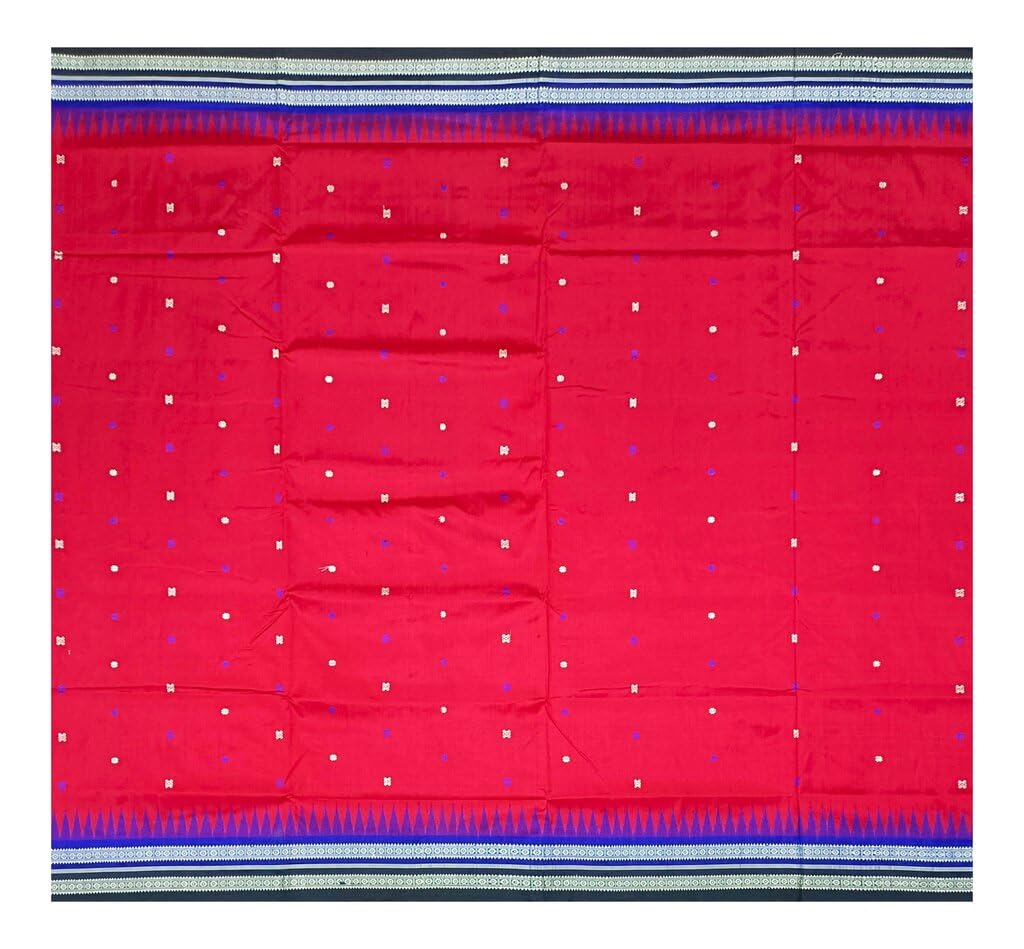 SAMBALPURI BANDHA CRAFT sambalpuri bomkai silk saree with blouse piece(Mini buti design in red color base with double boarder)
