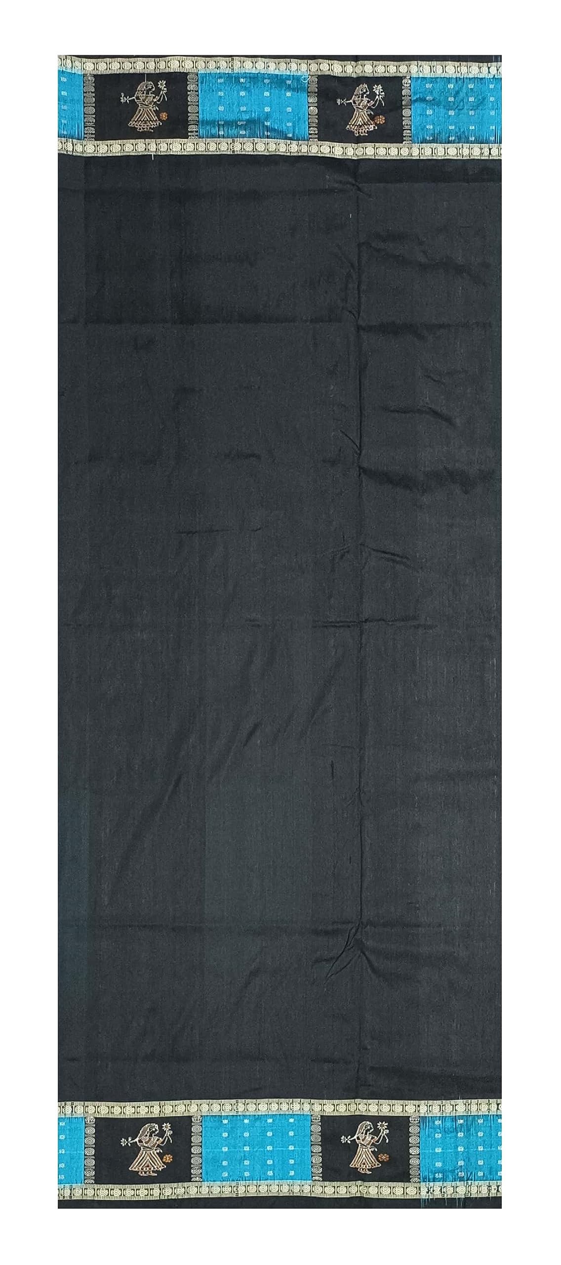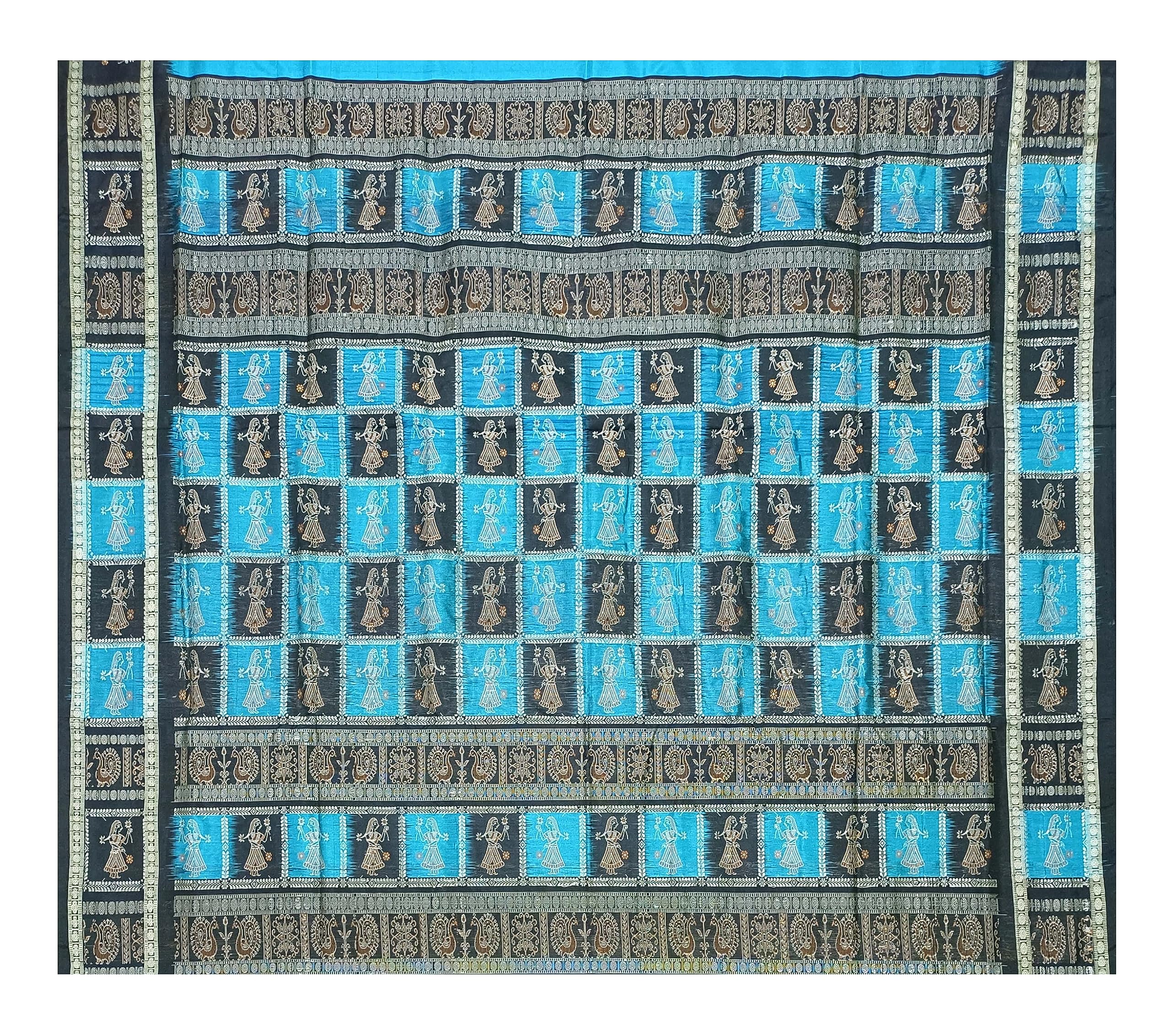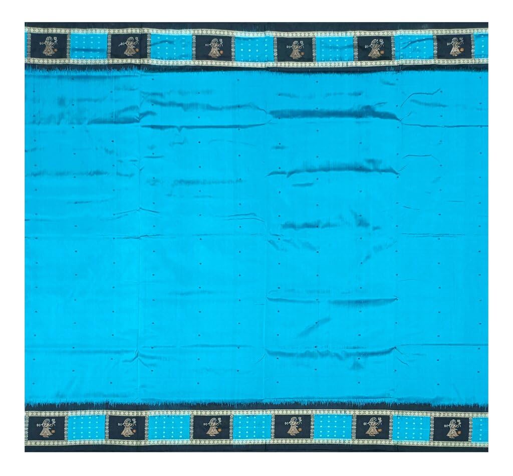 HomeFashionSareeSAMBALPURI BANDHA CRAFT sambalpuri bomkai silk saree with blouse piece(Mini buti design in sky blue color base wth doll motifs in the boarder)