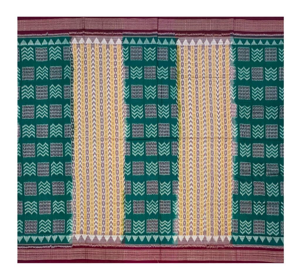 SAMBALPURI BANDHA CRAFT sambalpuri cotton saree(Traditional sambalpuri design in green and peach colors base)