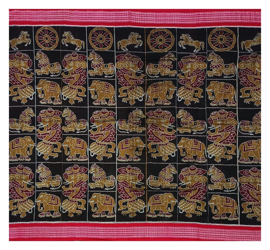 SAMBALPURI BANDHA CRAFT sambalpuri cotton saree with blouse piece(Animals design in Coffee black color background)