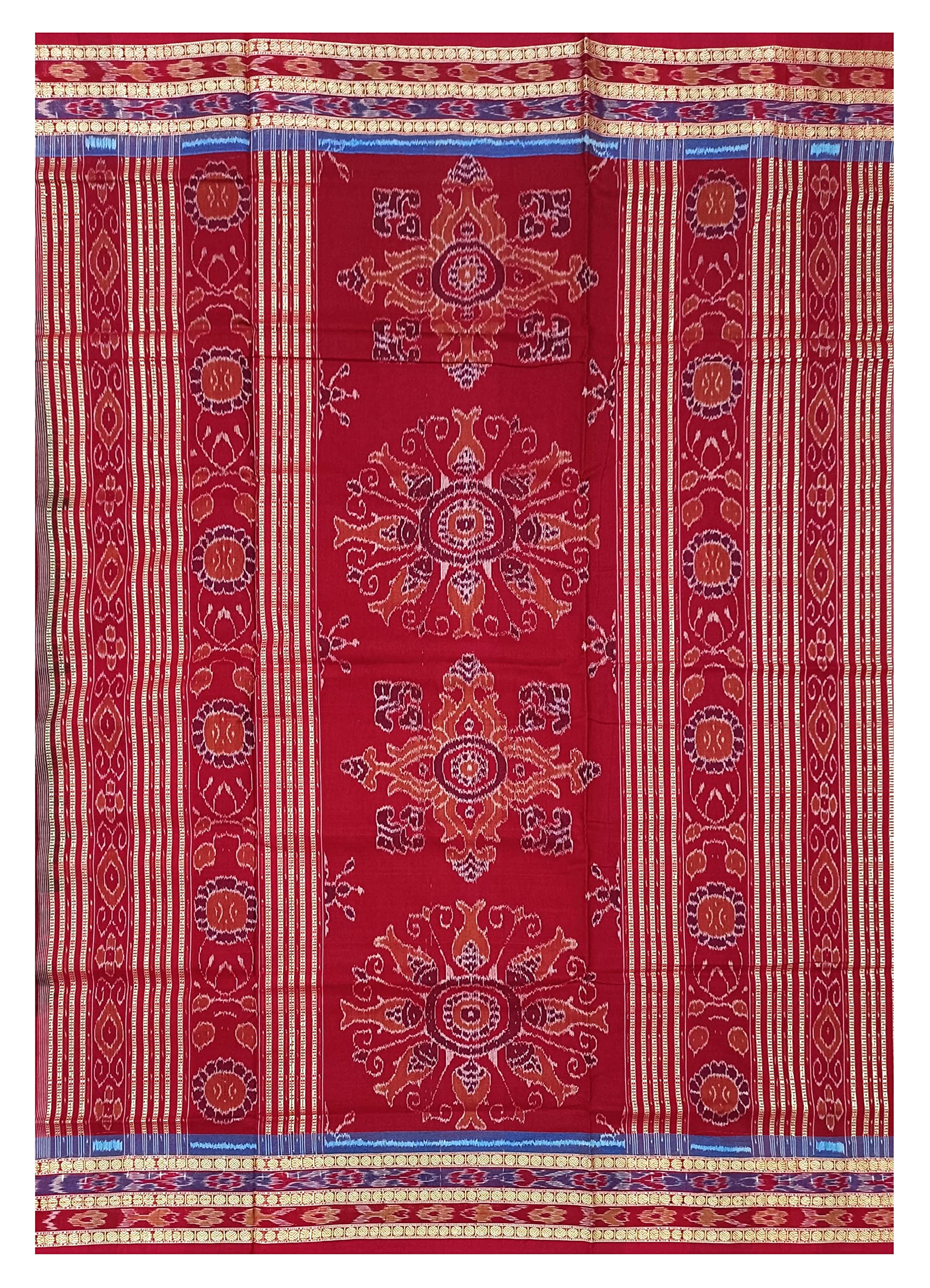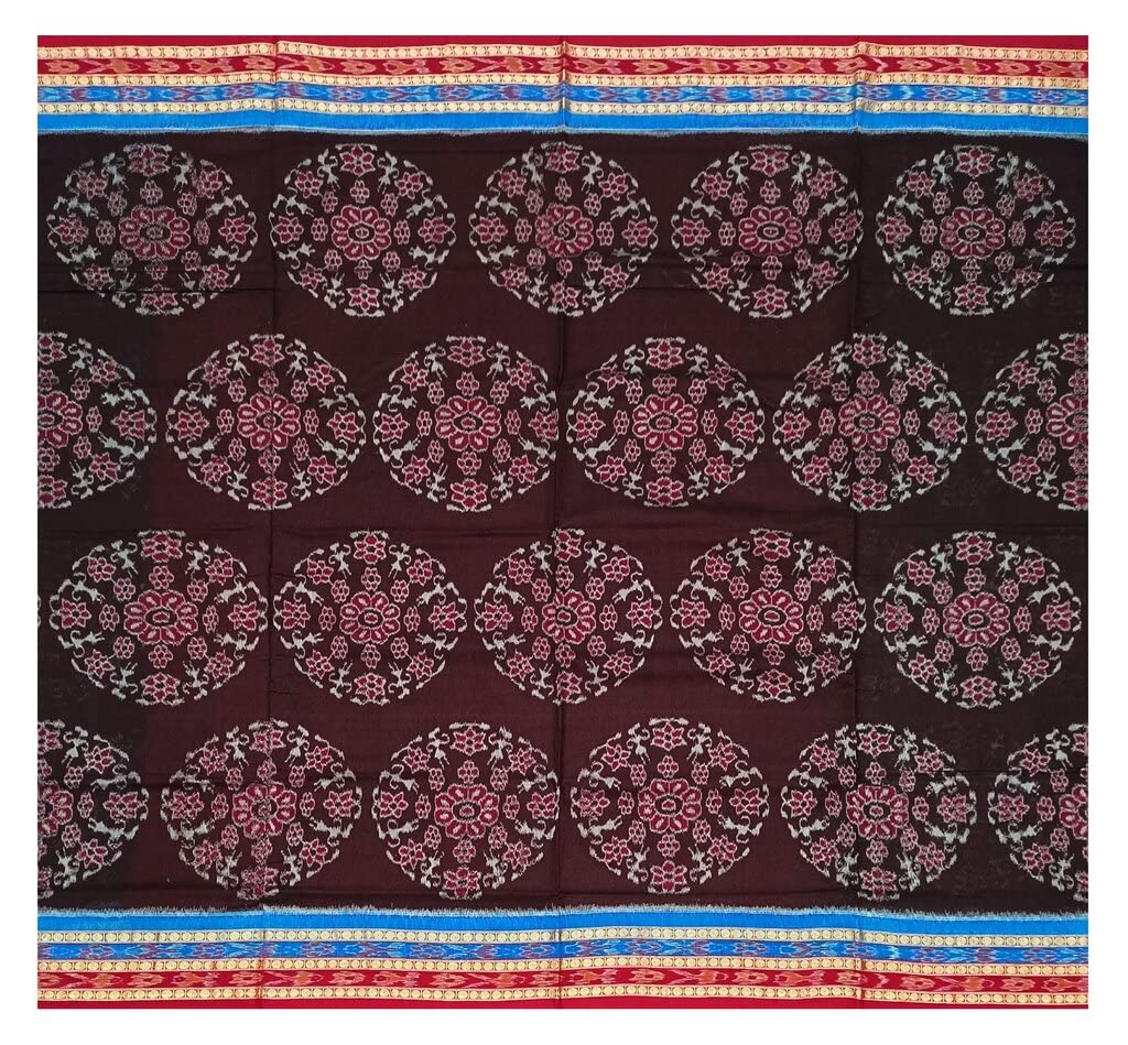 SAMBALPURI BANDHA CRAFT sambalpuri cotton saree with blouse piece(Terracotta art design in coffee color base)