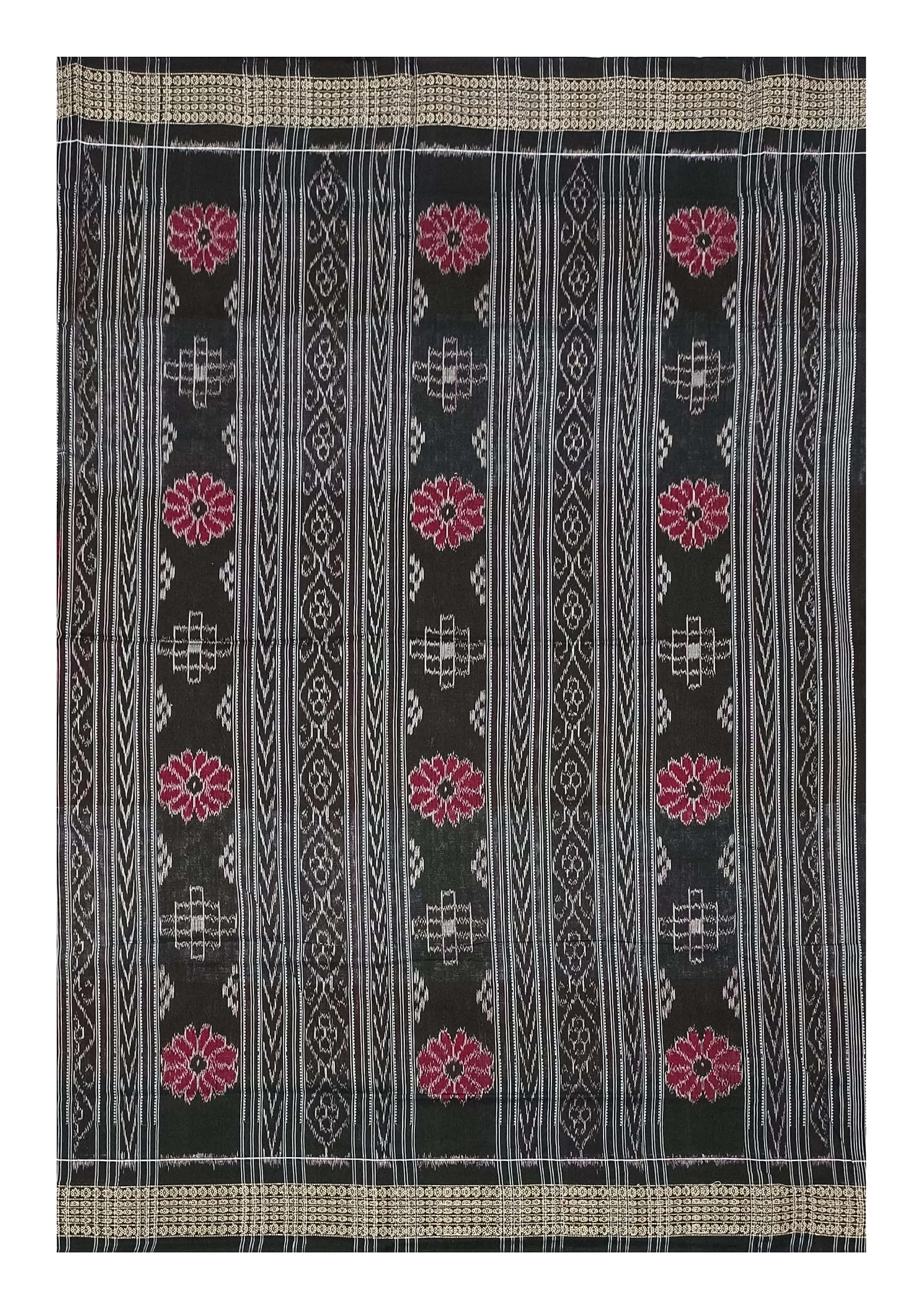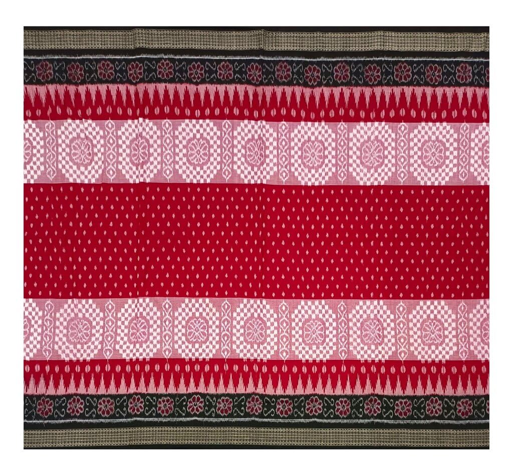 SAMBALPURI BANDHA CRAFT sambalpuri cotton saree with blouse piece(Traditional design in red black and white colors combination)