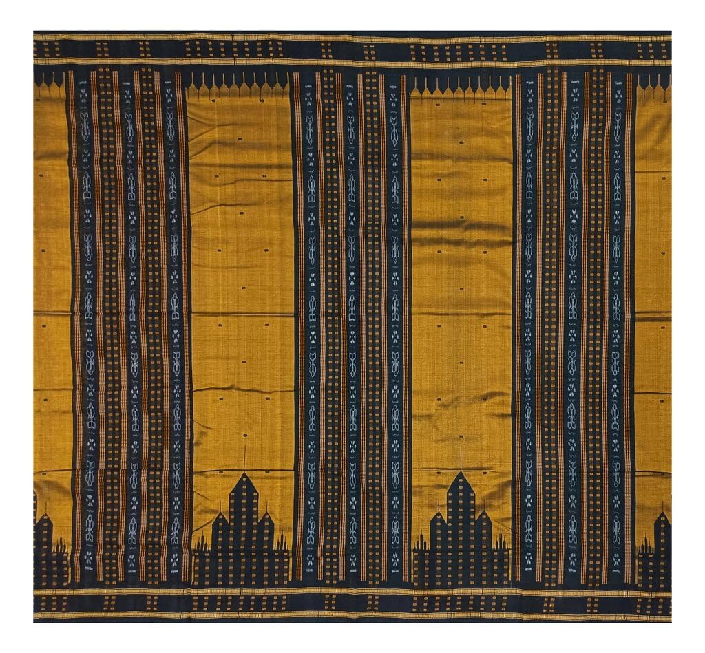 HomeFashionSareeSAMBALPURI BANDHA CRAFT Sambalpuri Silk Bapta Saree with blouse piece(Traditional Bapta Saree in Deep mustard yellow and black colors combination)
