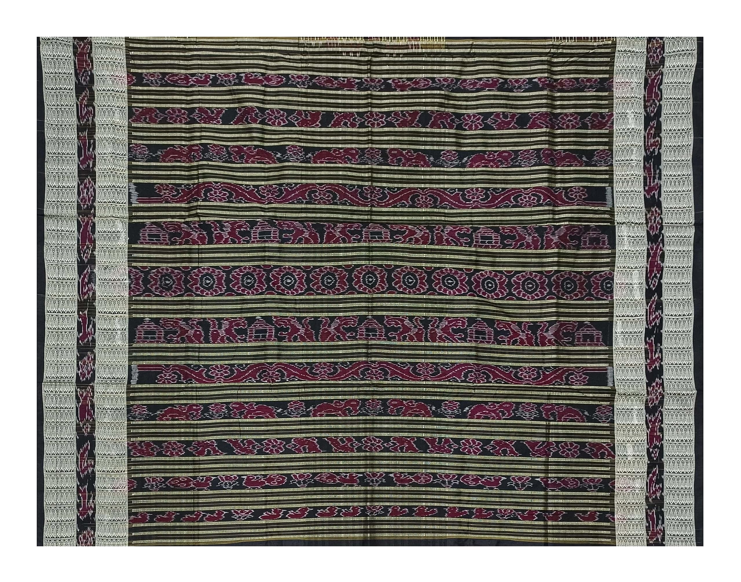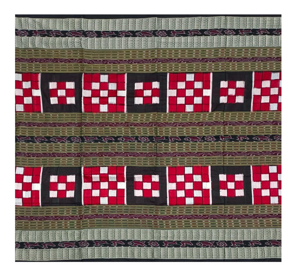 SAMBALPURI BANDHA CRAFT Sambalpuri silk saree with blouse piece(Bichitrapuri design in red black colors combination)