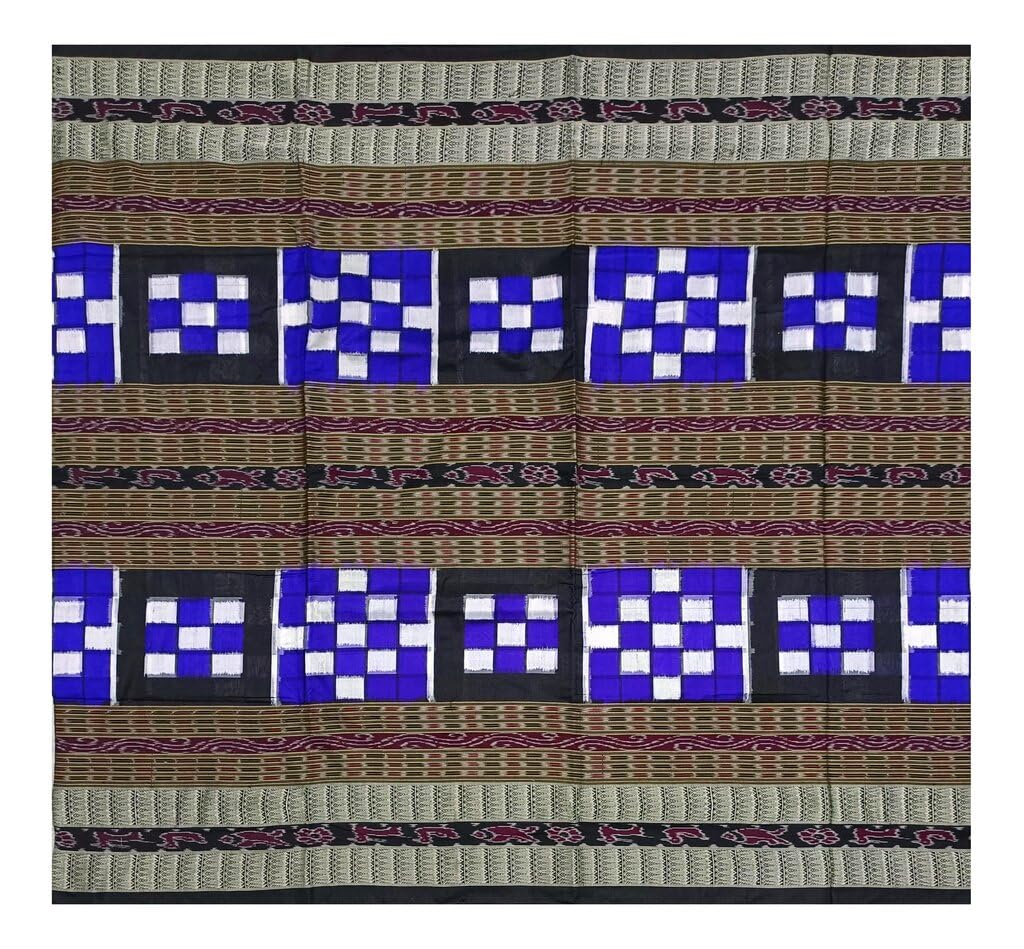 SAMBALPURI BANDHA CRAFT Sambalpuri silk saree with blouse piece(Pasapali bichitrapuri design in blue black colors combination)