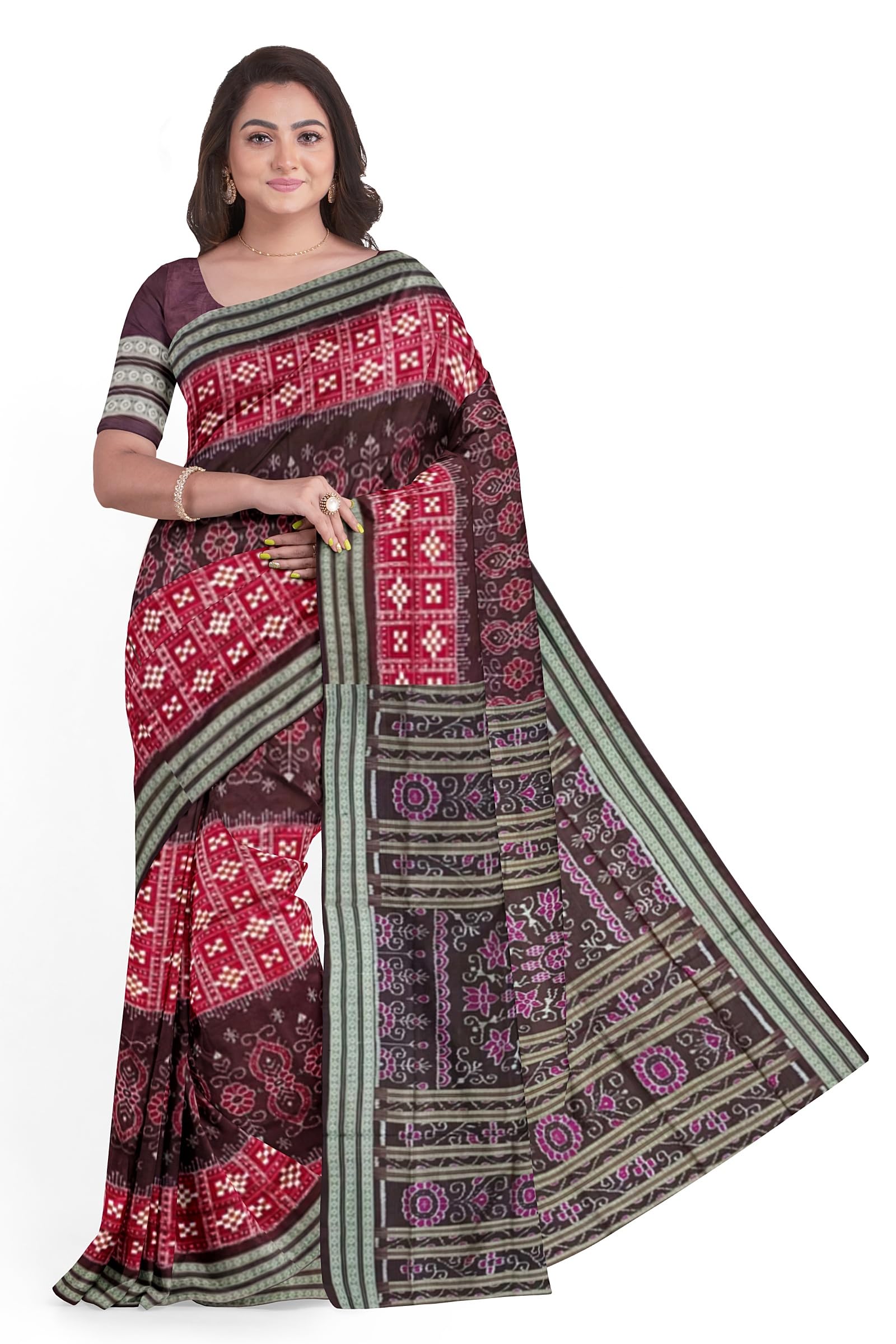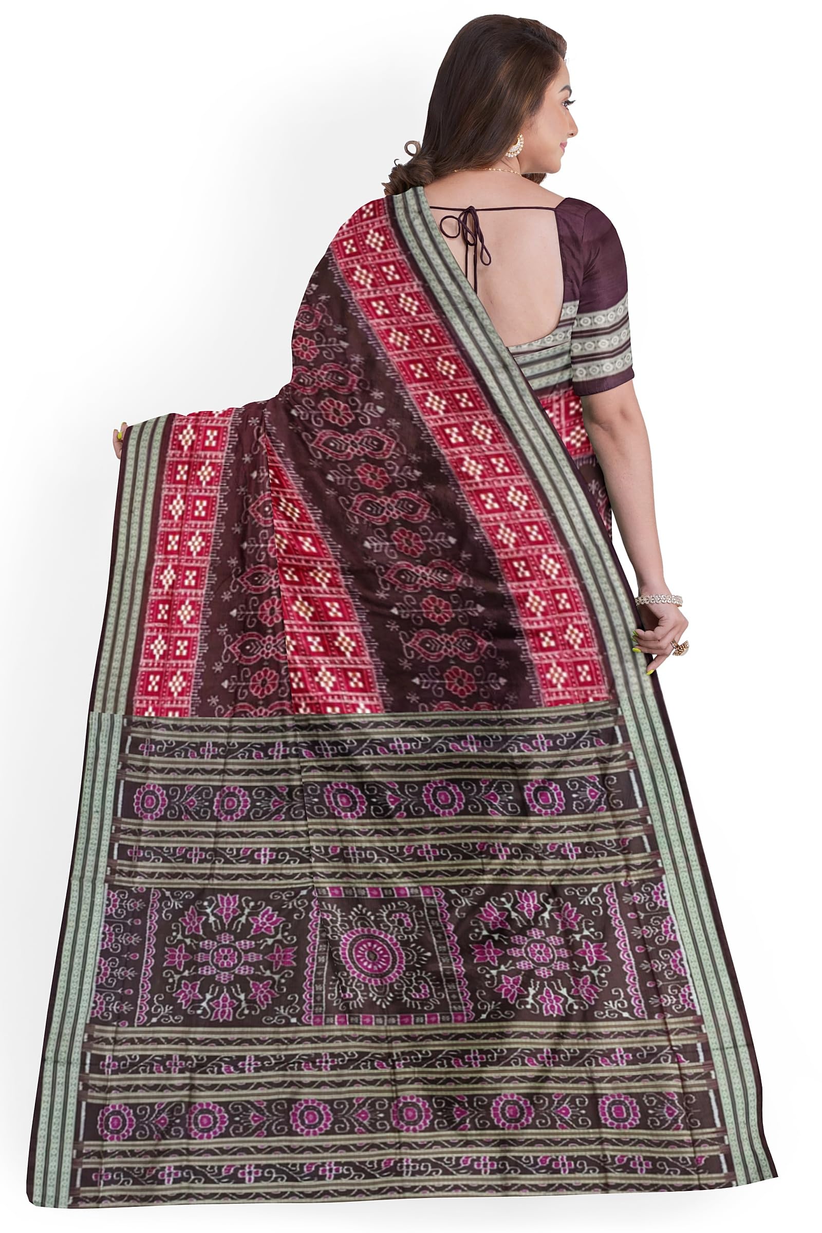 SAMBALPURI BANDHA CRAFT sambalpuri silk saree with blouse piece(pasapali design in maroonish red coffee and white colors combination)