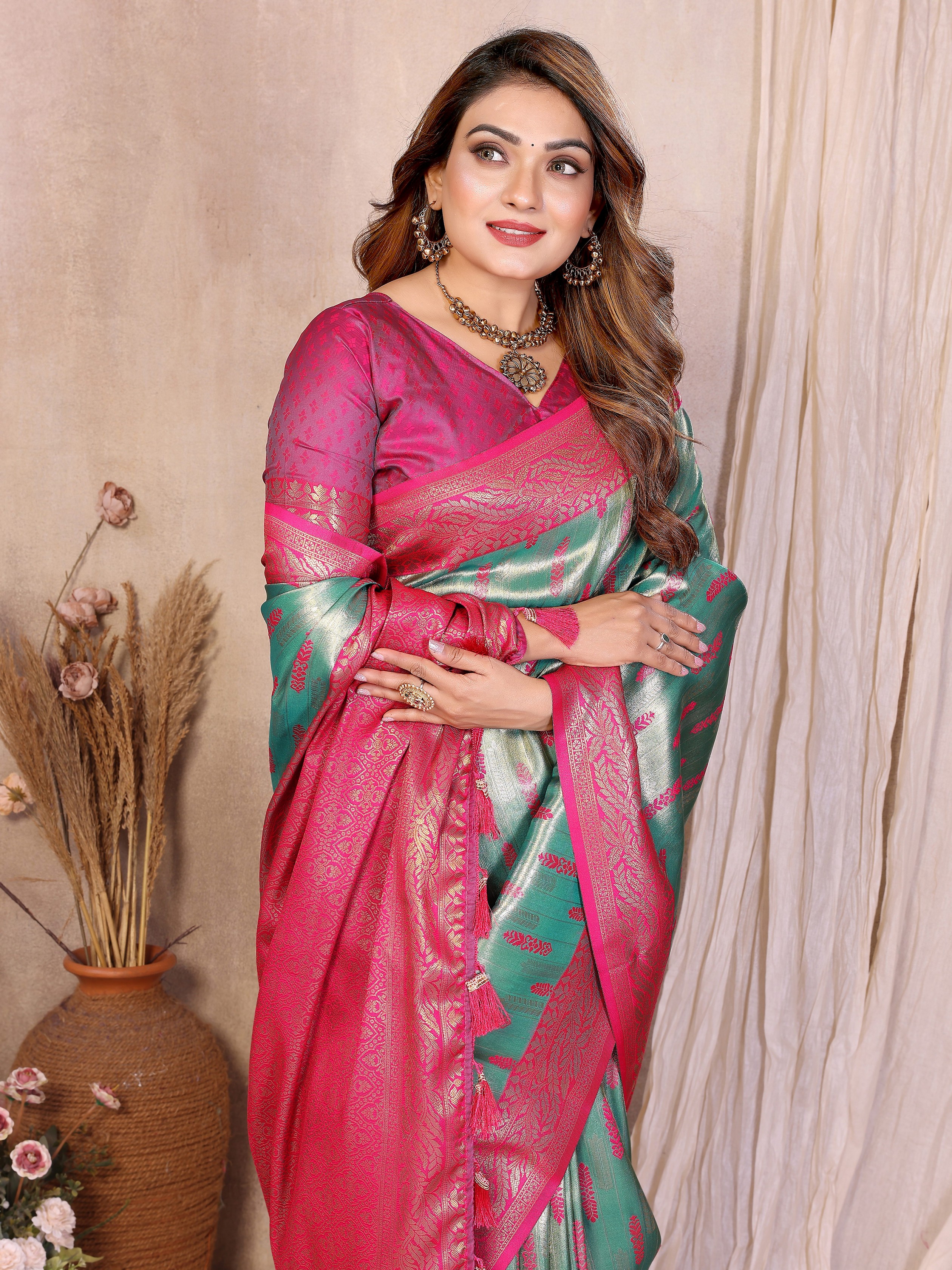 Sea Green Color Beautiful Banarasi Tissue Silk Rich Sophisticated Saree