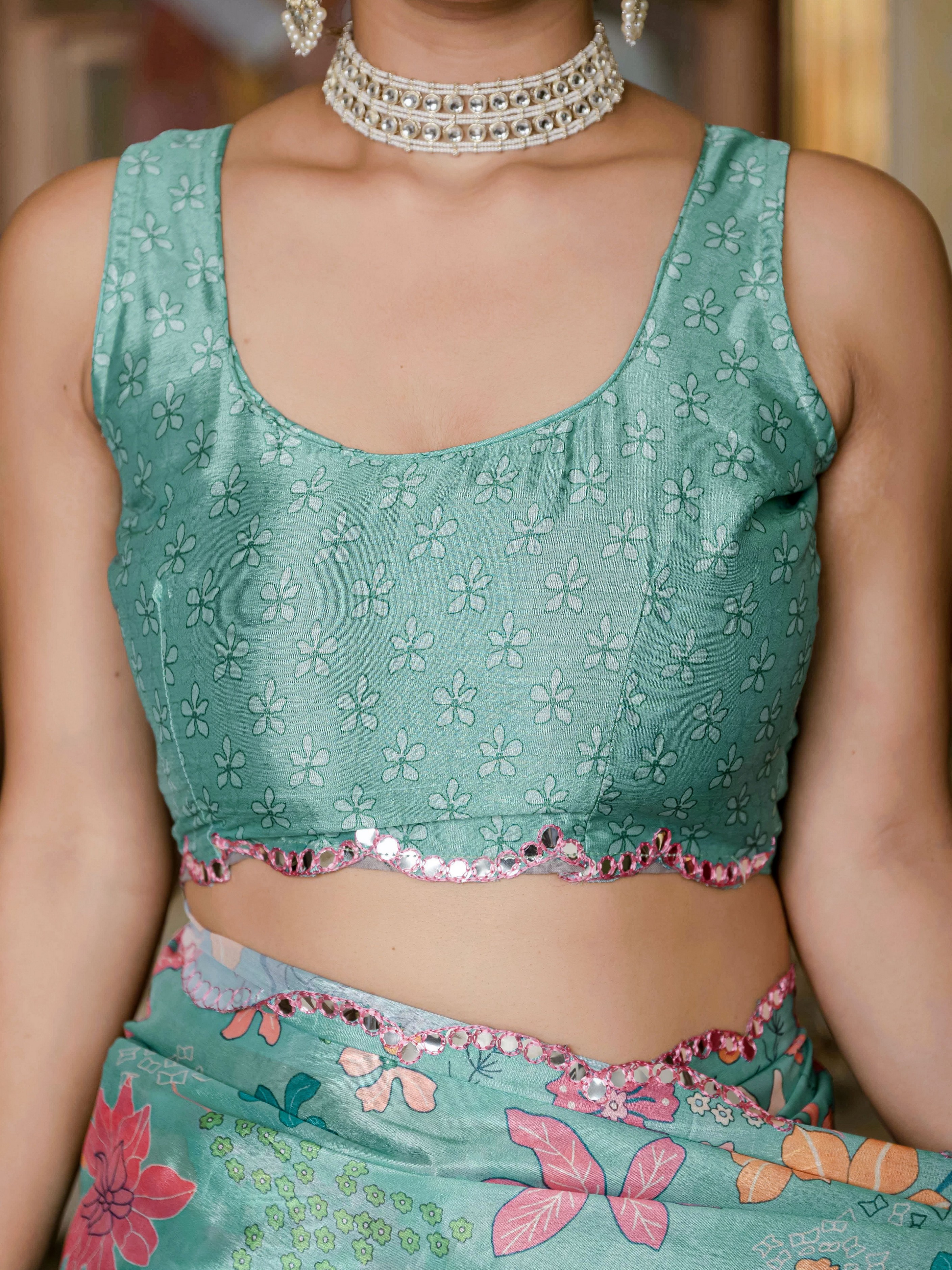 Sea Green Color Graceful Chinon Fabric Smart Girlie Printed Ready To Wear Saree