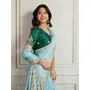 Sea Green Color Star Georgette Fabric Designer Embroidery Work Heavy Ceremonial Saree