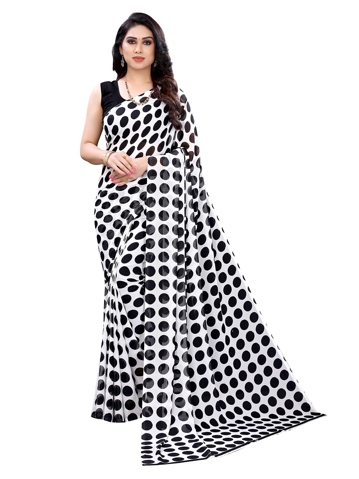 SIRIL Women's Polka Dot Georgette Saree With Blouse(2095S440_Black)