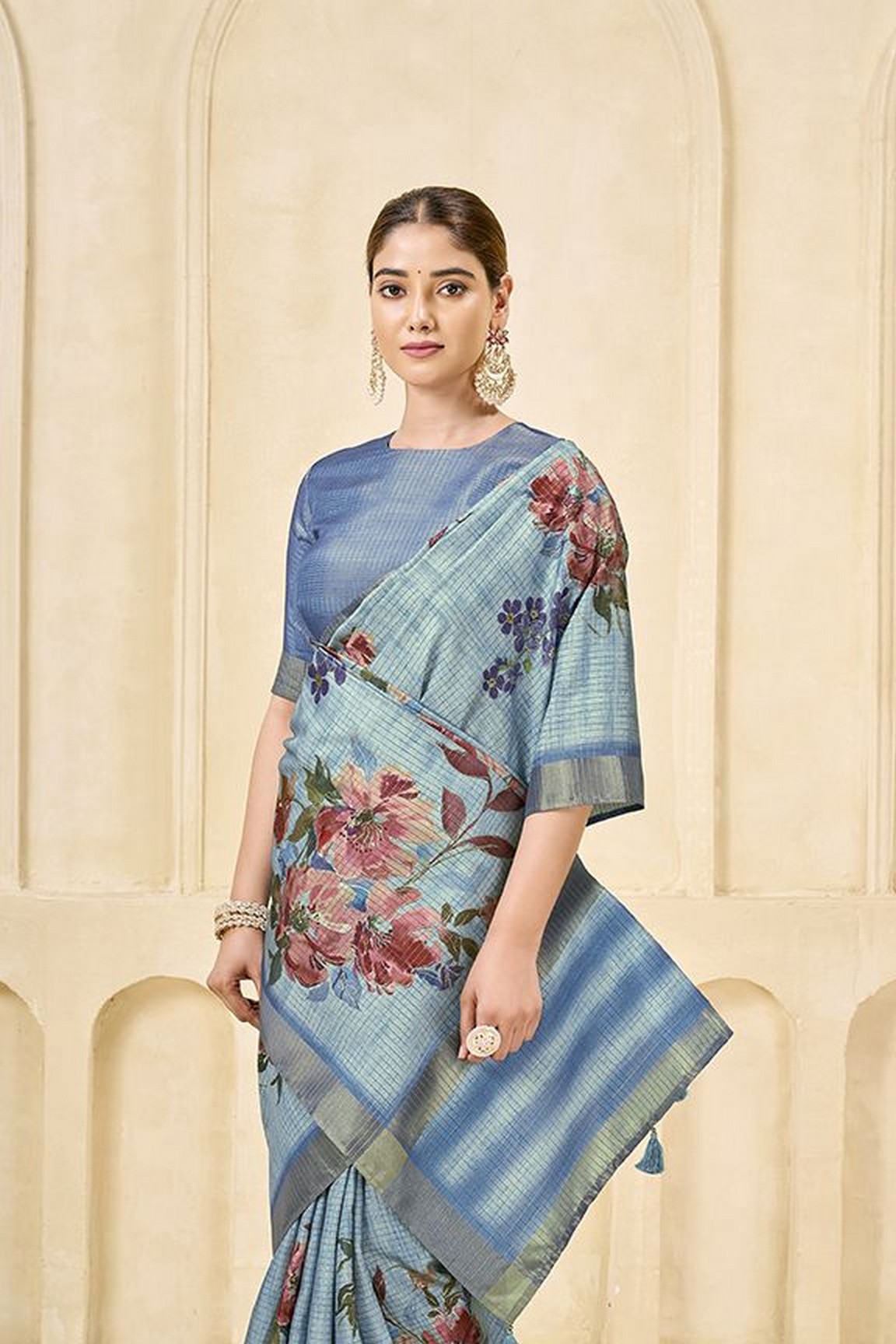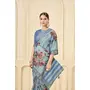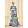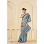 Sky Blue Color Signora Jari Checks Silk Fabric Floral Digital Print with Foil Print Graceful Ceremonial Saree