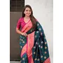 Teal Blue Color Soft Silk Fabric Wevon Meenakari Designer Trending Partywear Saree