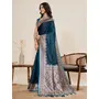 Teal Color Satin Silk Fabric Wevon Jari Designer Graceful Partywear Saree