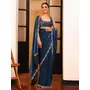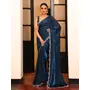 Teal Color Tissue Fabric Fancy Designer Swarovski Work Partywear Saree