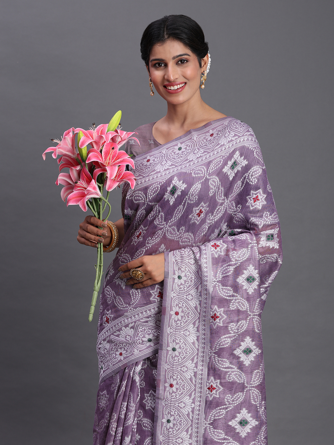 Violet Color Beautiful Woven Designer Linen Cotton Saree