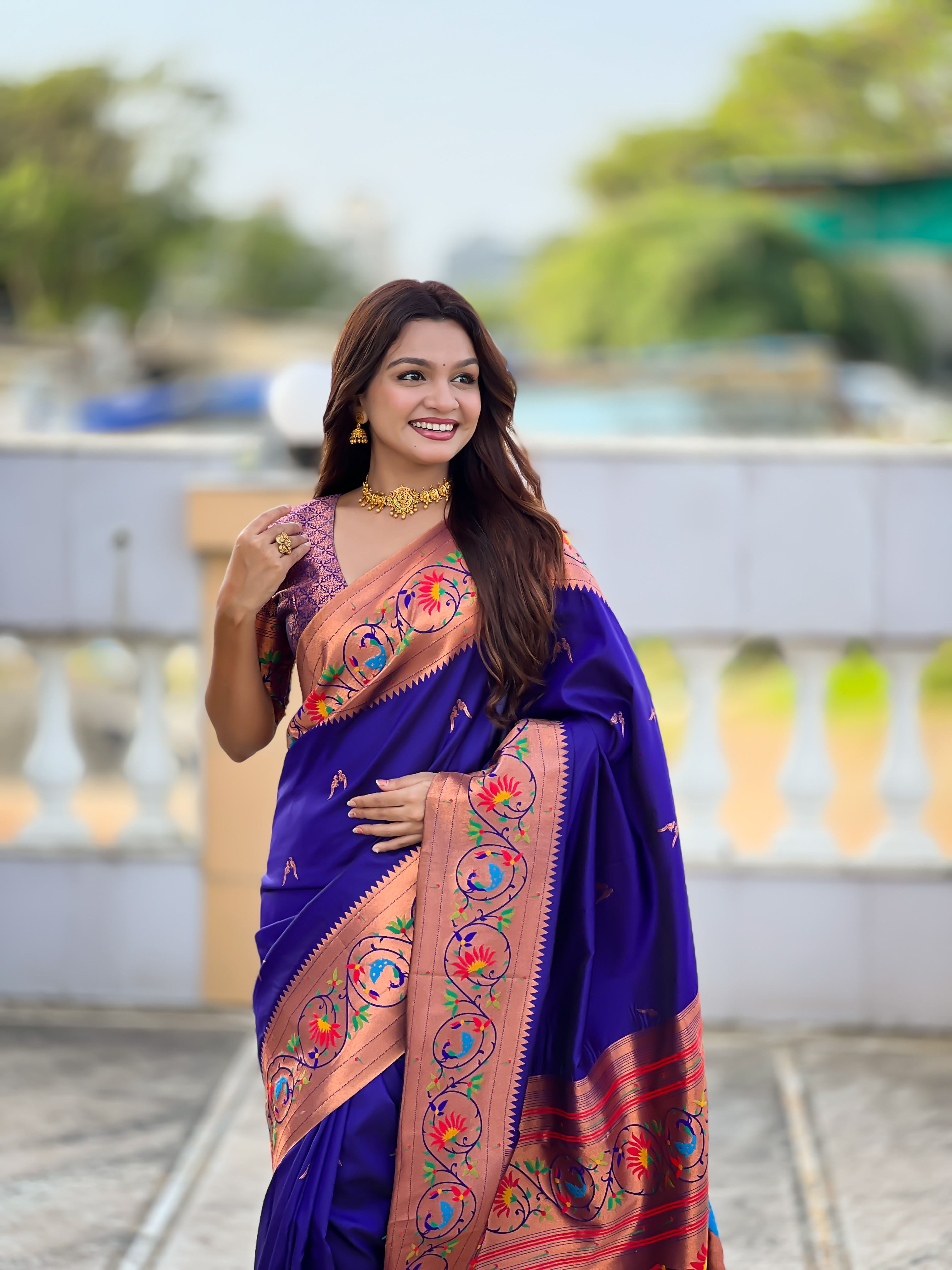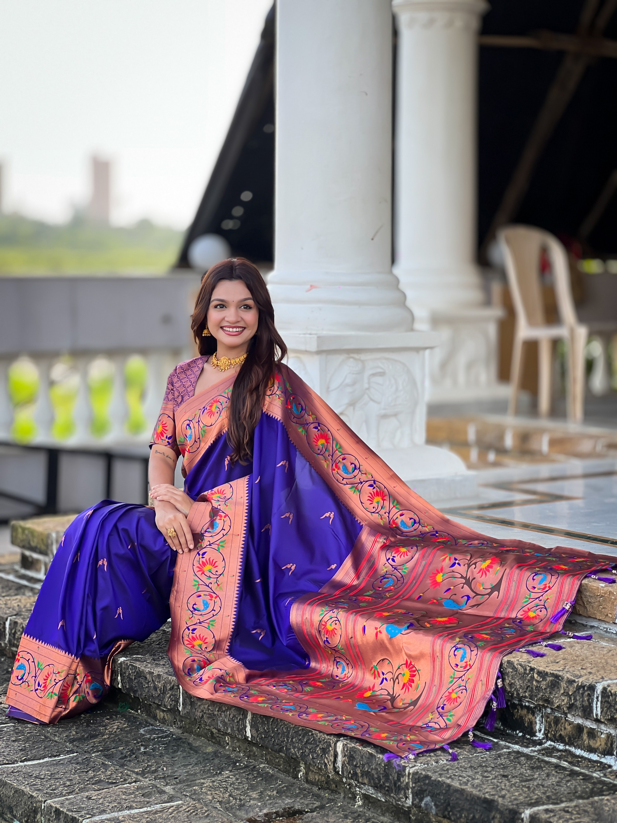 Violet Color Paithani Silk Fabric Woven Meenakari Jacquard Designer Graceful Wedding Saree