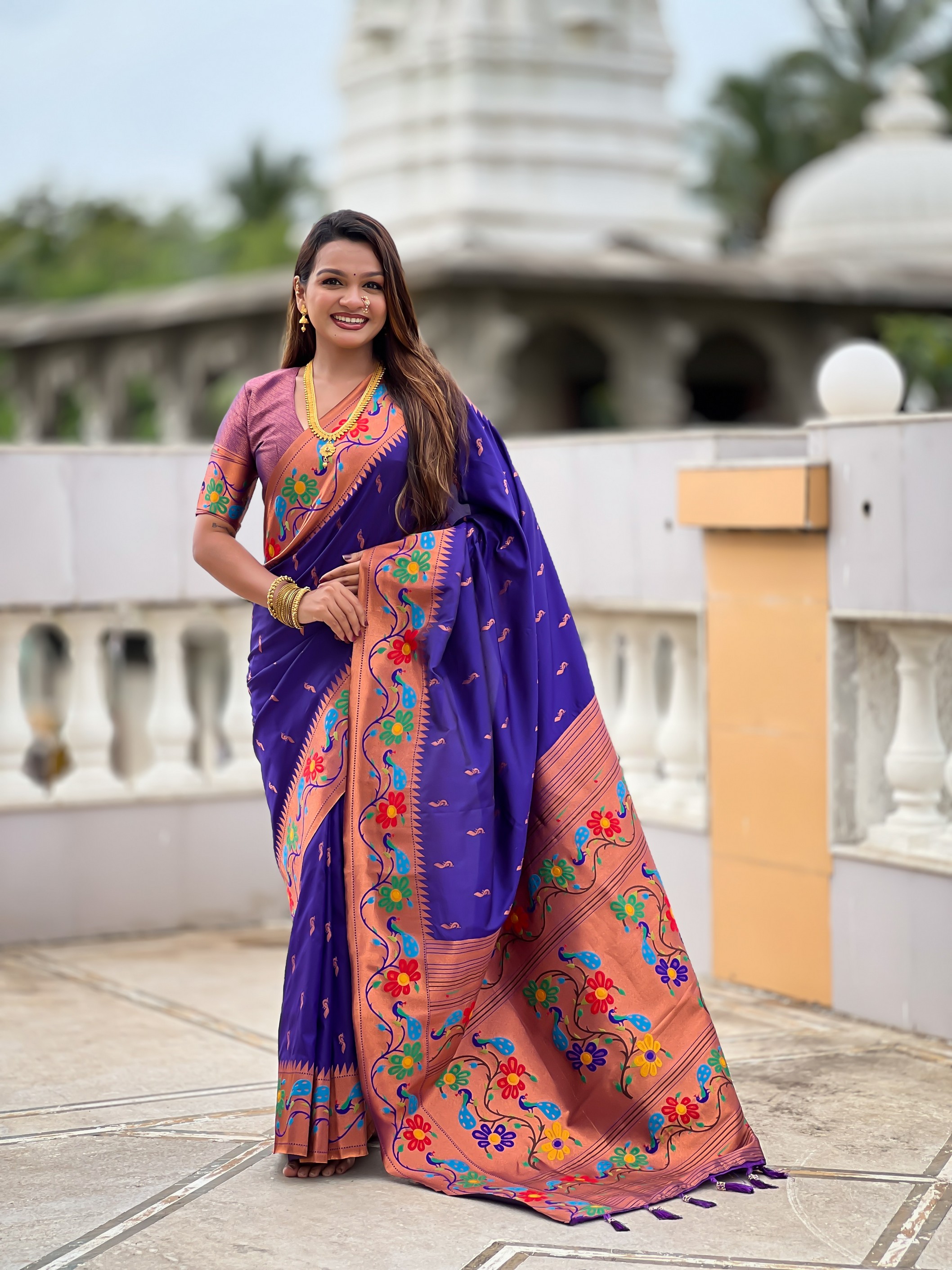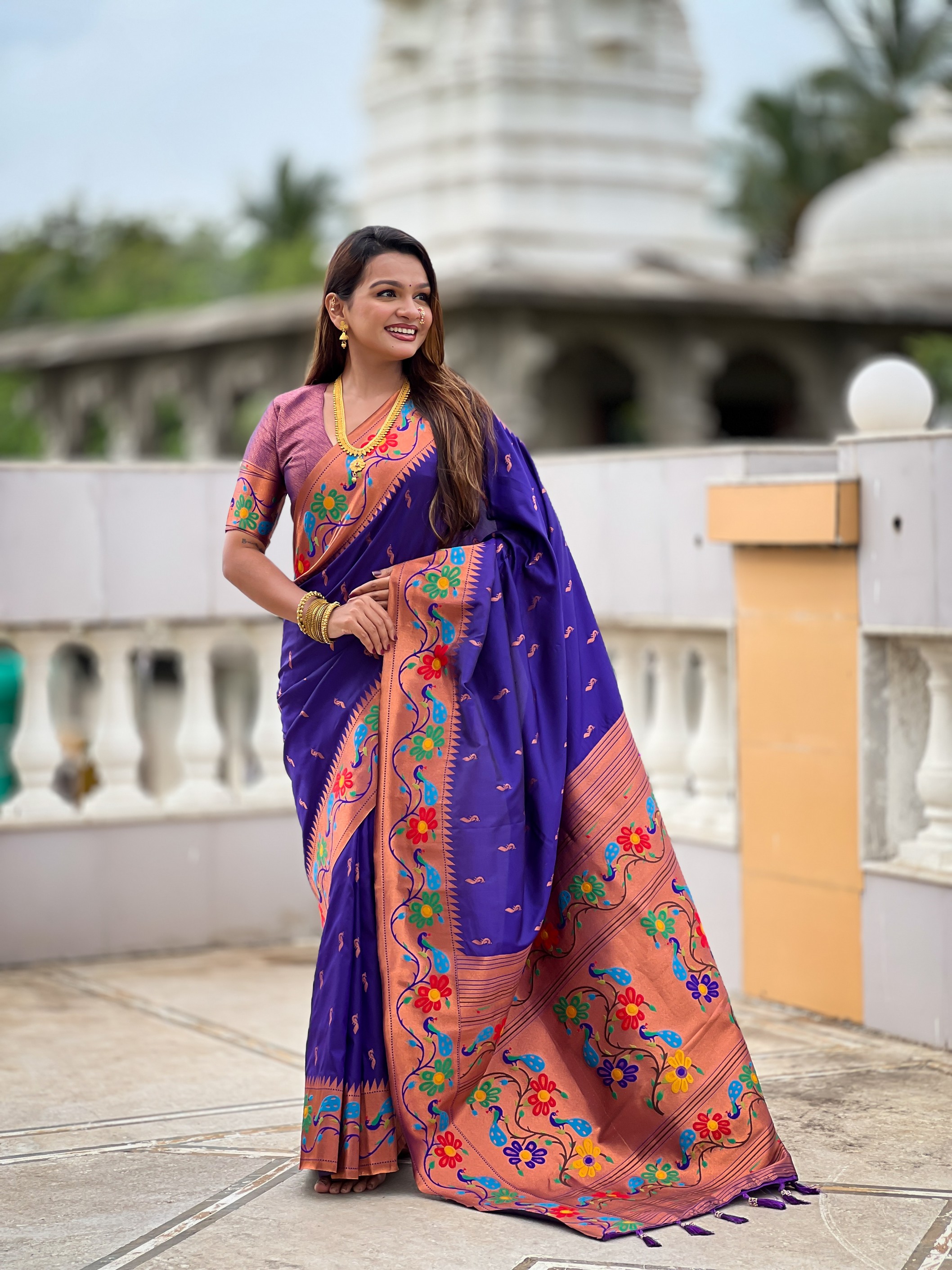 Violet Color Woven Meenakari Jacquard Designer Paithani Silk Fabric Ethnic Saree