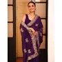 Voilet Color Designer Satin Fabric Saree For Ceremonial Looks