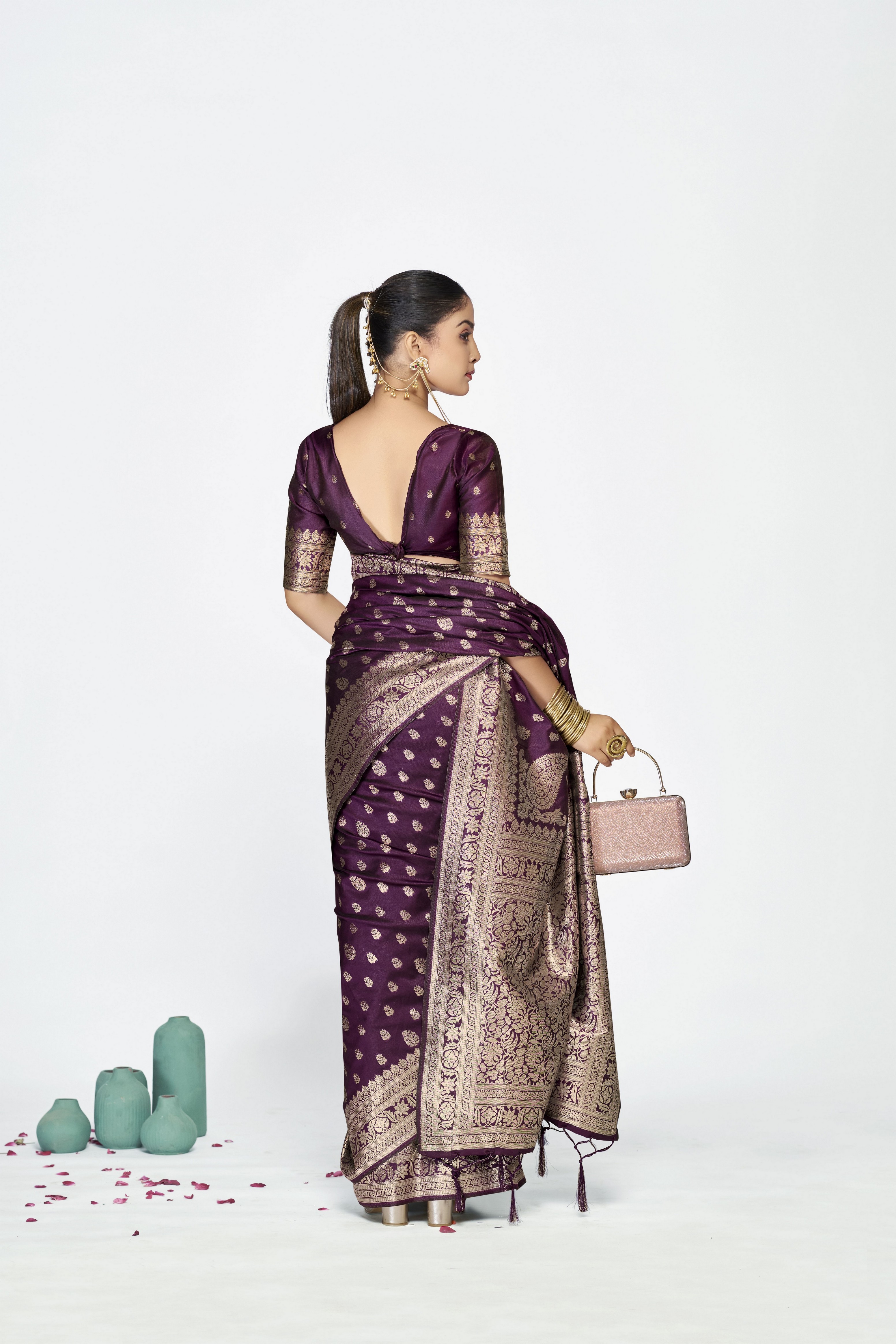 Wine Color Banarasi Silk Fabric Woven Jari Butti Designer Celebrity Fancy Saree