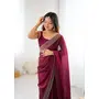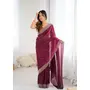 Wine Color Fendy Satin Fabric Zarkan Hand Work Designer Bollywood Style Saree