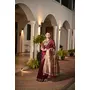 Wine Color Smart Khadi Raw Silk Saree With Graceful Madhubani Style Print
