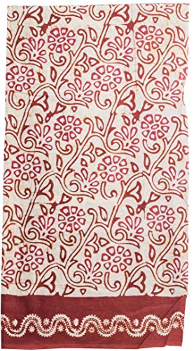 Women's Original Wax Batik Hand Block Print Natural Dye Mul Cotton Kutchhi Premium Traditional Handicraft Saree (EK-SAR-0002-MCBT) - (Maroon - Biege)