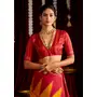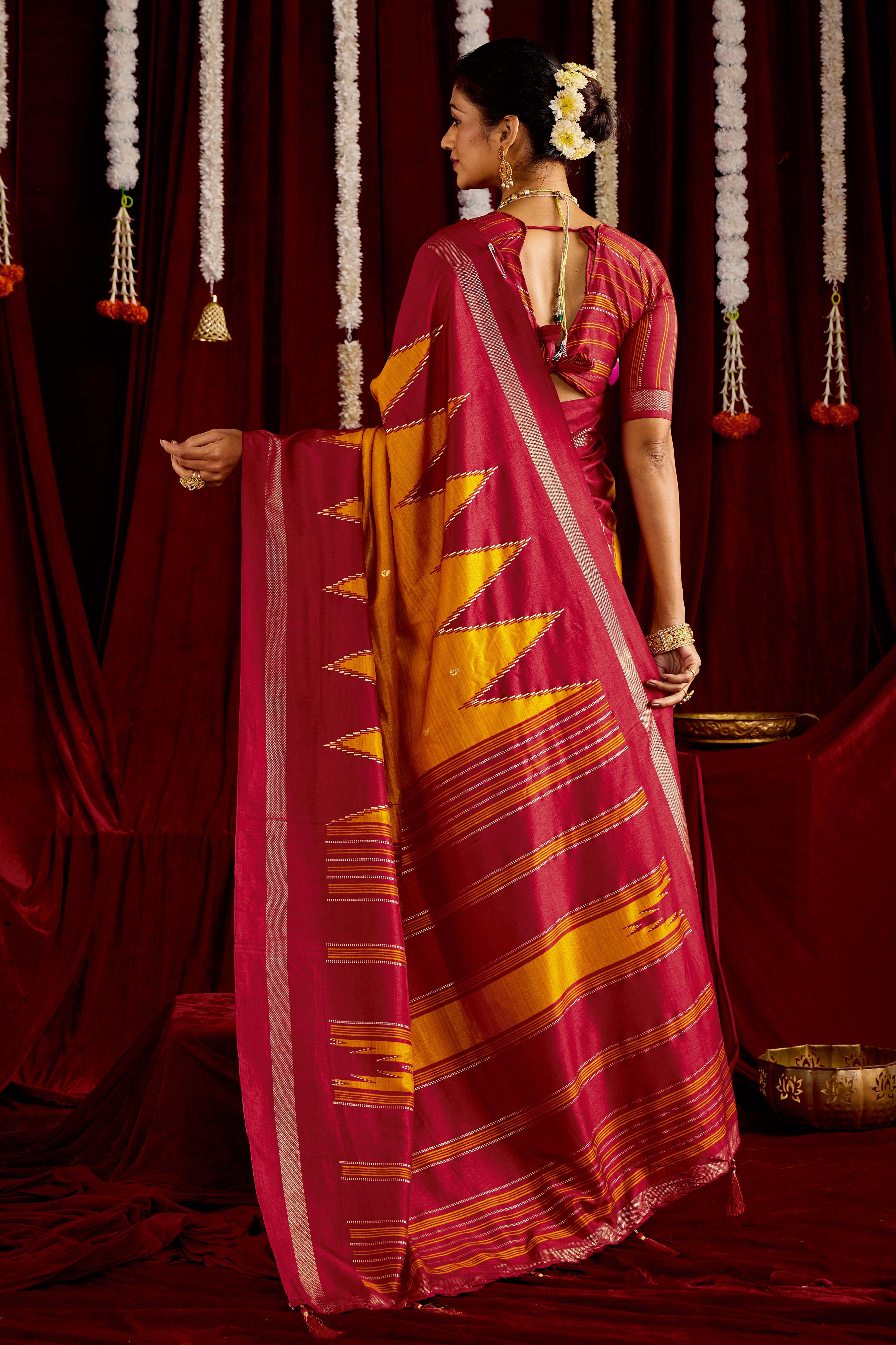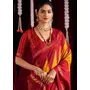 Yellow & Red Color Ikkat Silk Fabric Designer Zig Zag Printed Traditional Party Looks Saree