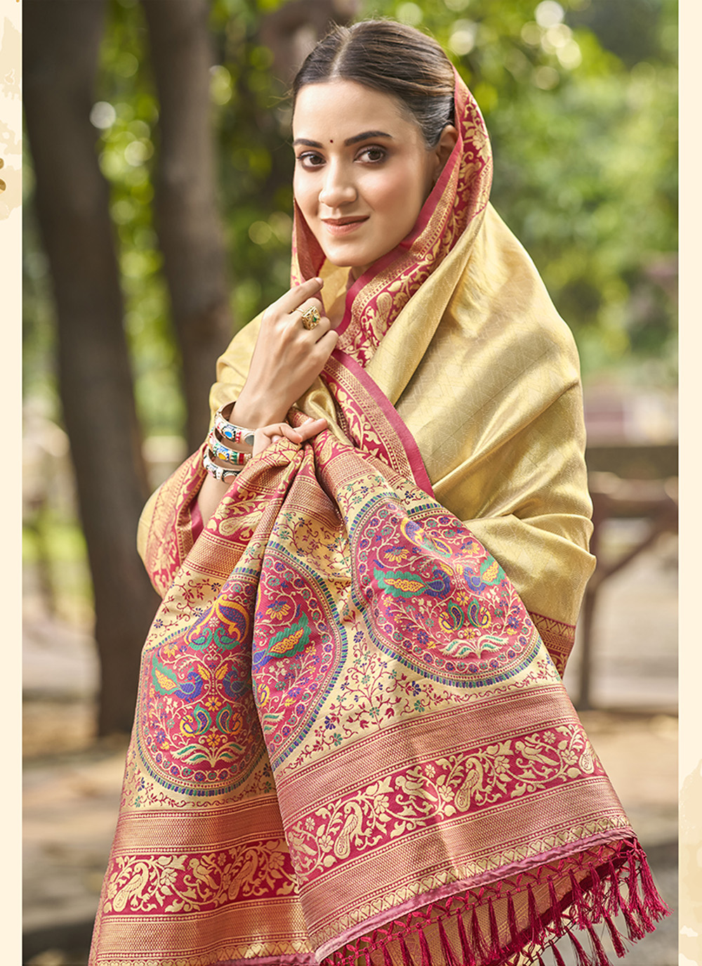 Yellow Color Kanjivaram Silk Fabric Designer Ethnic Festive Wear Saree