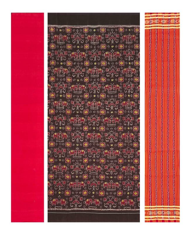 SAMBALPURI BANDHA CRAFT sambalpuri cotton dress material set(Elephant design in coffee color base)