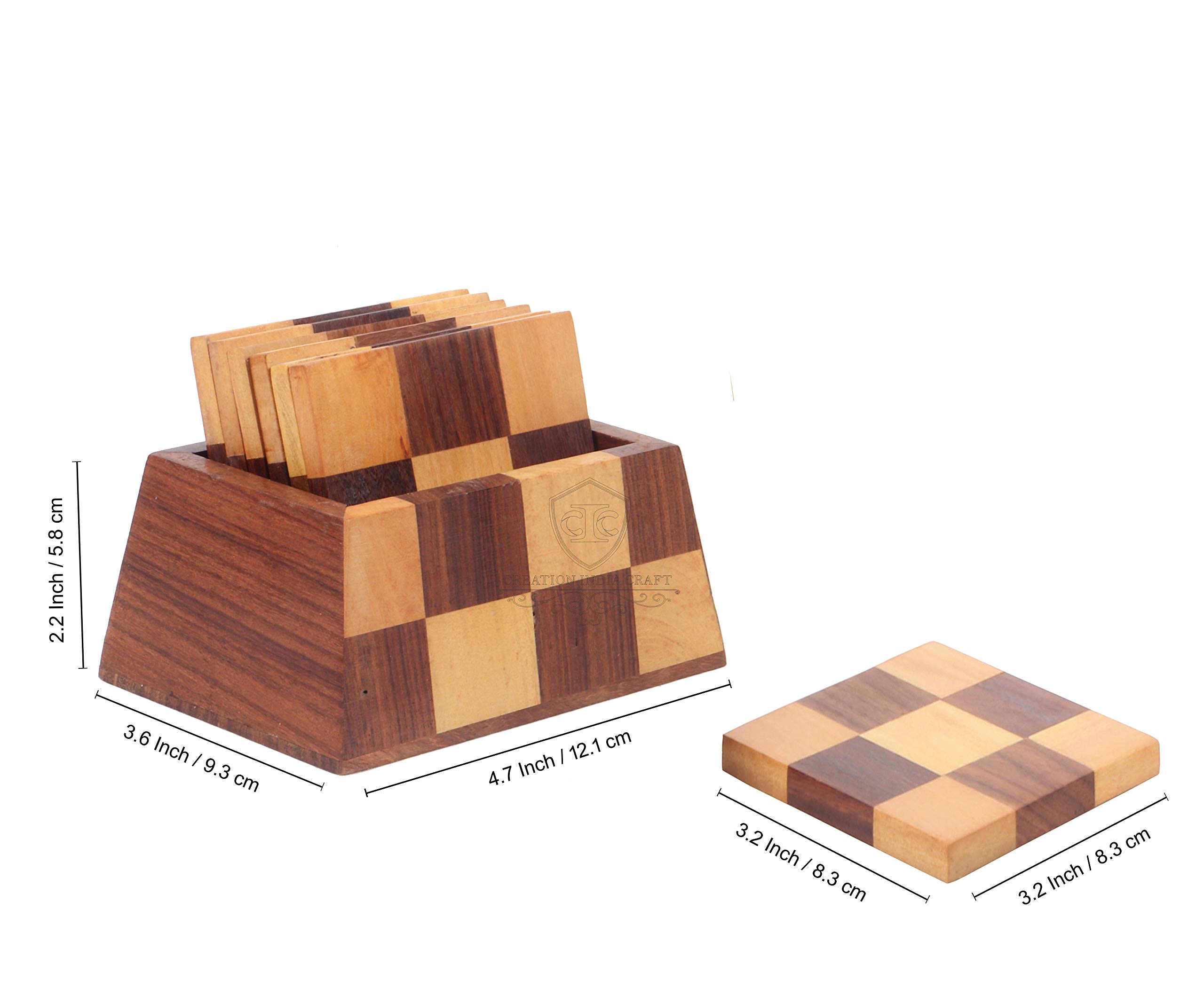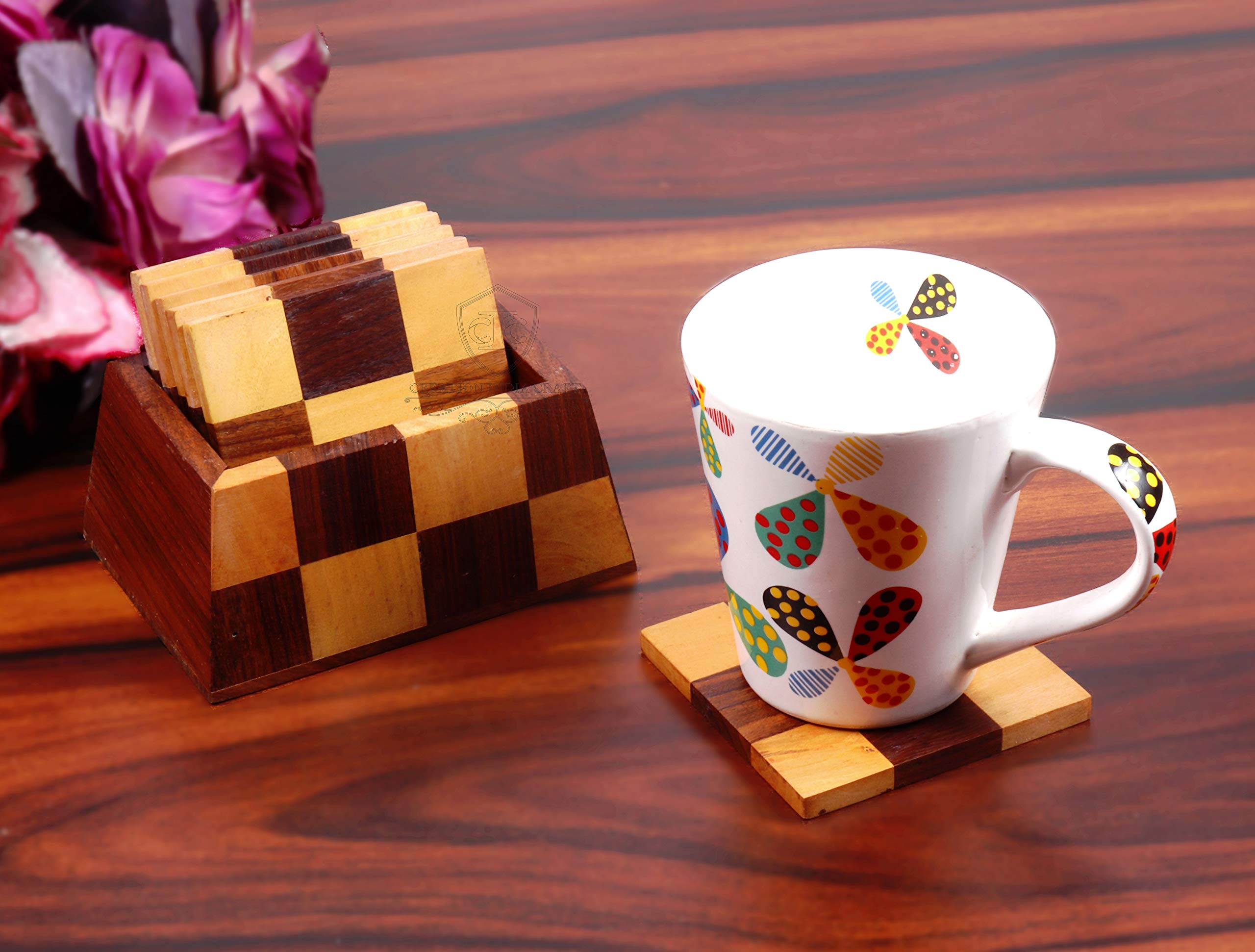 HomeFor DeletionWOOD CRAFTS OF RAJASTHAN Tea Coasters Set of 6 with Holder Decorative Coaster Set for Dining Tea Cups Coffee Mugs Beer Cans Bar Tumblers and Water Glasses