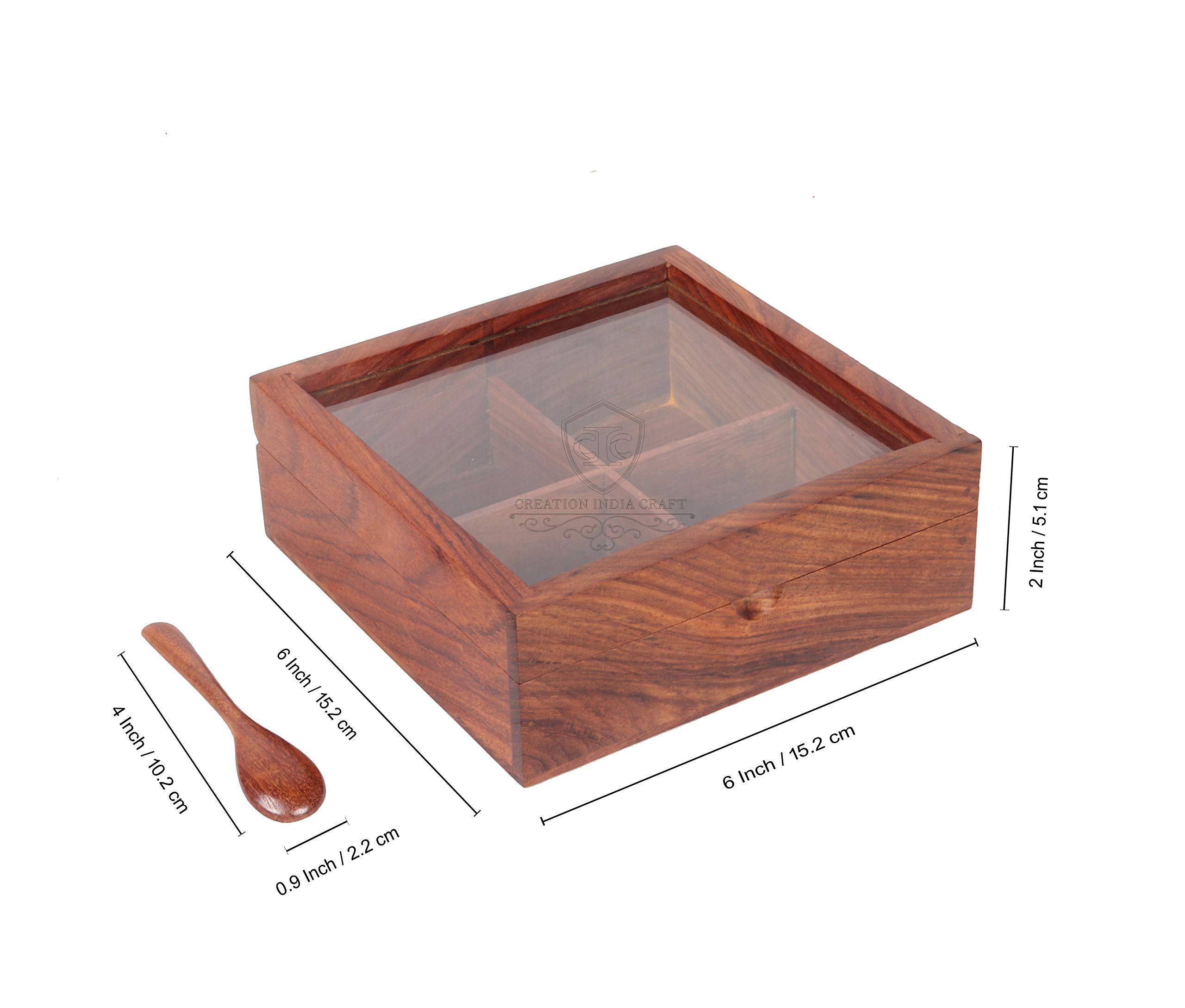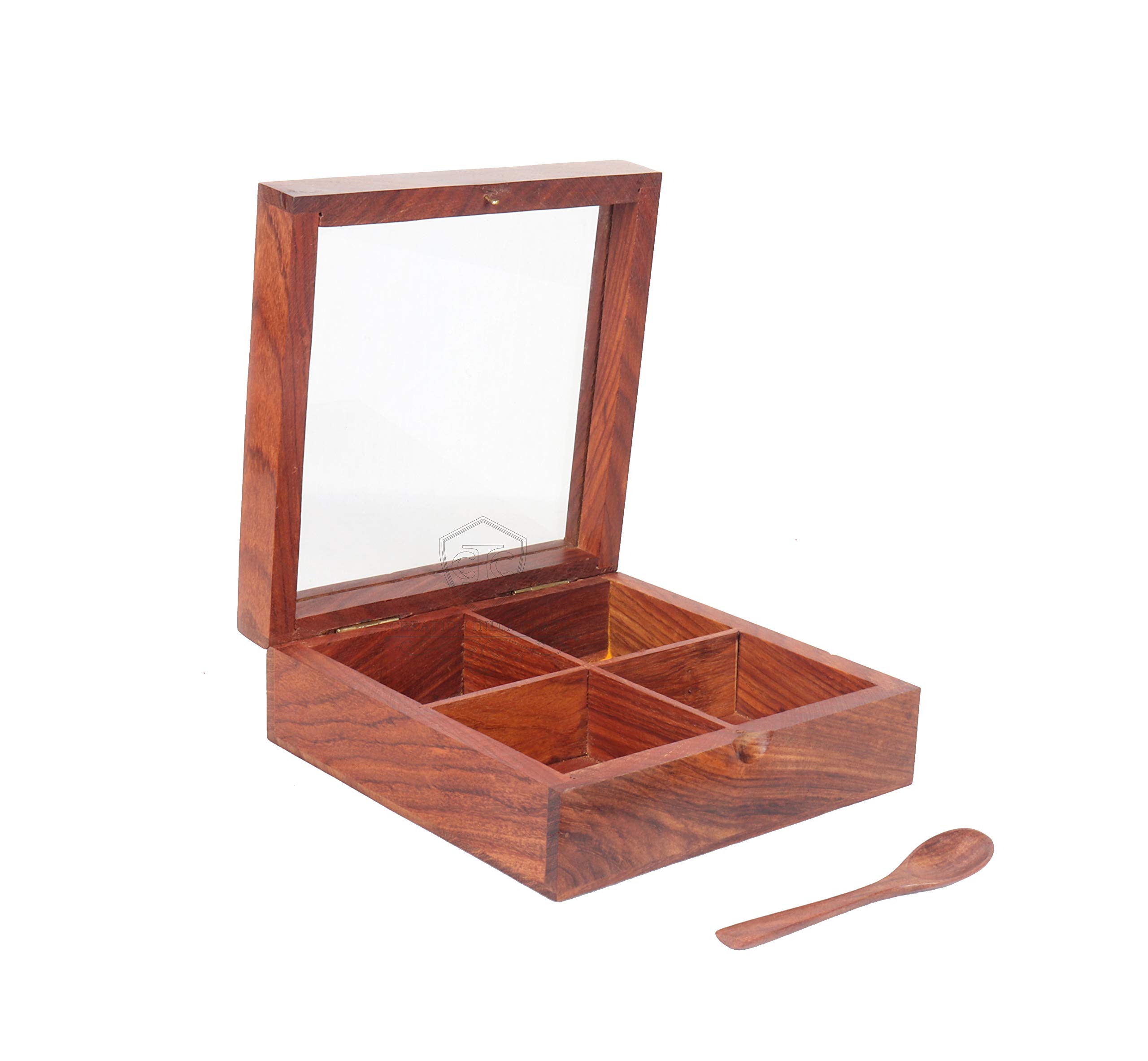 HomeFor DeletionWOOD CRAFTS OF RAJASTHAN Wooden Spice Box Masala Box Spice Rack Organizer Spice Jars For Kitchen Storage Containers Boxes & Jewellery Boxes For Women Table Top Box With Spoon (Brown)