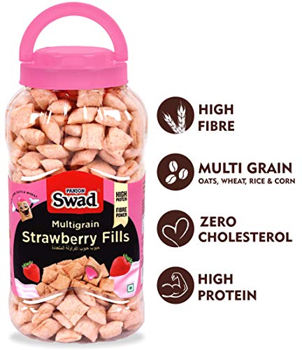 Swad Breakfast Cereal Multigrain Strawberry Fills (Made with Oats Corn Wheat Rice Zero Cholesterol Strawberry Burst Fills) Jar 370 g