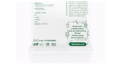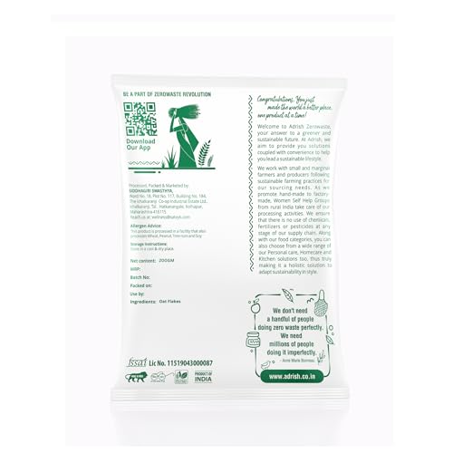 Adrish Zerowaste Organic Rolled Oats (200g) - Unflavored Oat Flakes| Fibre Rich | No Sugar | No Maida | Healthy Breakfast Cereal| Preservative Free Oat Flakes | 100% Wholegrain Cereal
