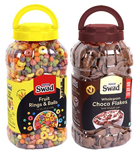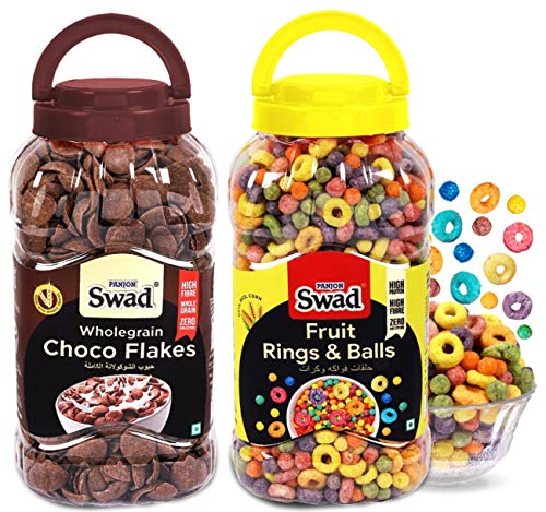 Swad Fruit Rings N Balls & Choco Flakes Combo of 2 Jars (High Fibre Breakfast Cereals Froot Kids) Ja