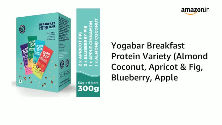 Yogabar Breakfast Protein Variety (Almond Coconut Apricot & Fig Blueberry Apple Cinnamon Bars - 300g