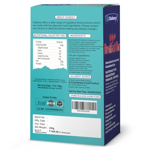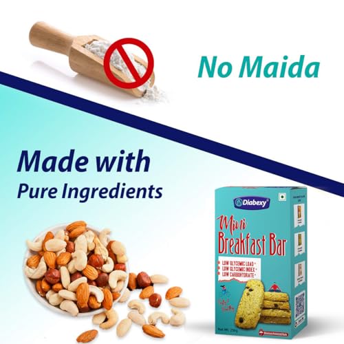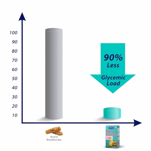 LOW GLYCEMIC LOAD - The Estimated glycemic load of Rusk or Maida Cookies ranges between 50-60 per 100 gm. Estimated glycemic load of Diabexy Diabetic Breakfast Bar is just 4 per 100g which is 90% lesser than other options like rusk and cookies. It means t