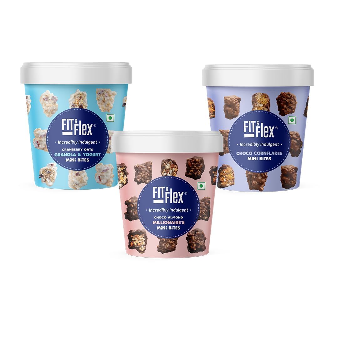 HomeGrocerySnacksHealthy SnacksFIT & FLEX Ready To Eat Choco Almond Cranberry Oats Granola & Yogurt And Choco Cornflakes Mini Bites Sweet Dessert Granola Bars For Kids - As Seen On Shark Tank India - 70 Gm Each (Combo Pack Of 3)