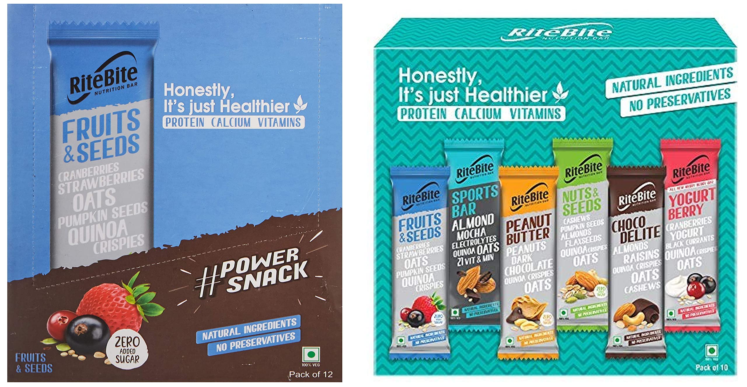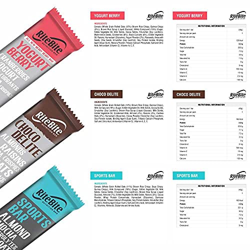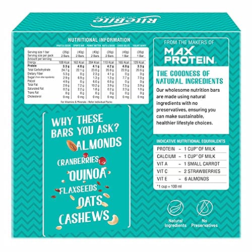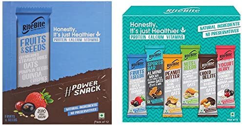 HomeGroceryHealthy BreakfastHealth BarRiteBite Max Protein Nutrition Assorted Bar, 375g (Pack of 10) Pouch, 12 x 375 g & Fruit & Seeds Bar 420g - Pack of 12
