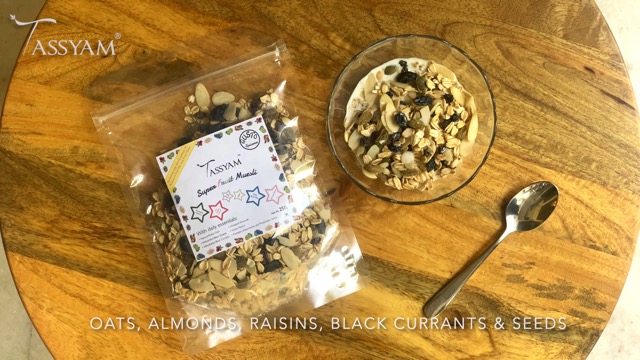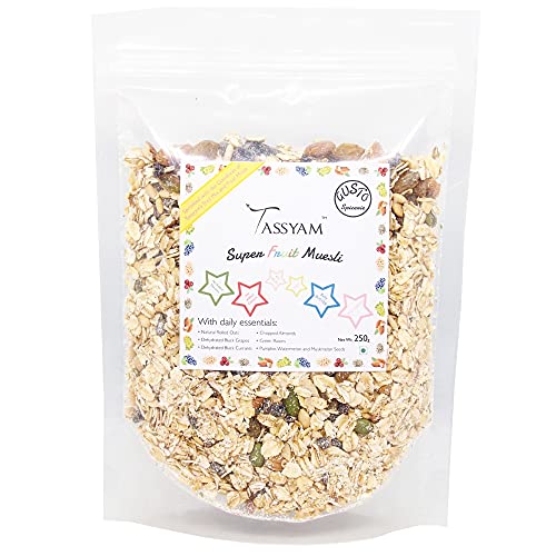 Tassyam Super Fruit Muesli 250 Grams | Natural Rolled Oats + Dehydrated & Dried Fruits