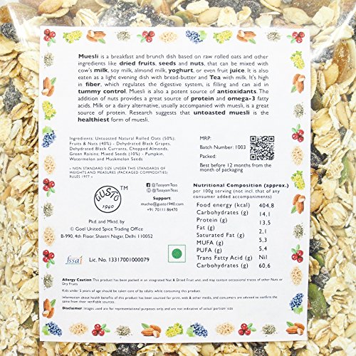 Package Contents: 1 Pouch of Super Fruit Muesli