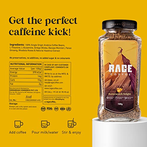 Rage Coffee Butterscotch Delight Flavour - Premium Arabica Instant Coffee (Make Delicious Hot/Cold Coffee) (Butterscotch Delight) (Butterscotch Delight 100g)