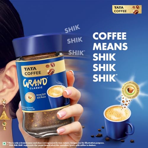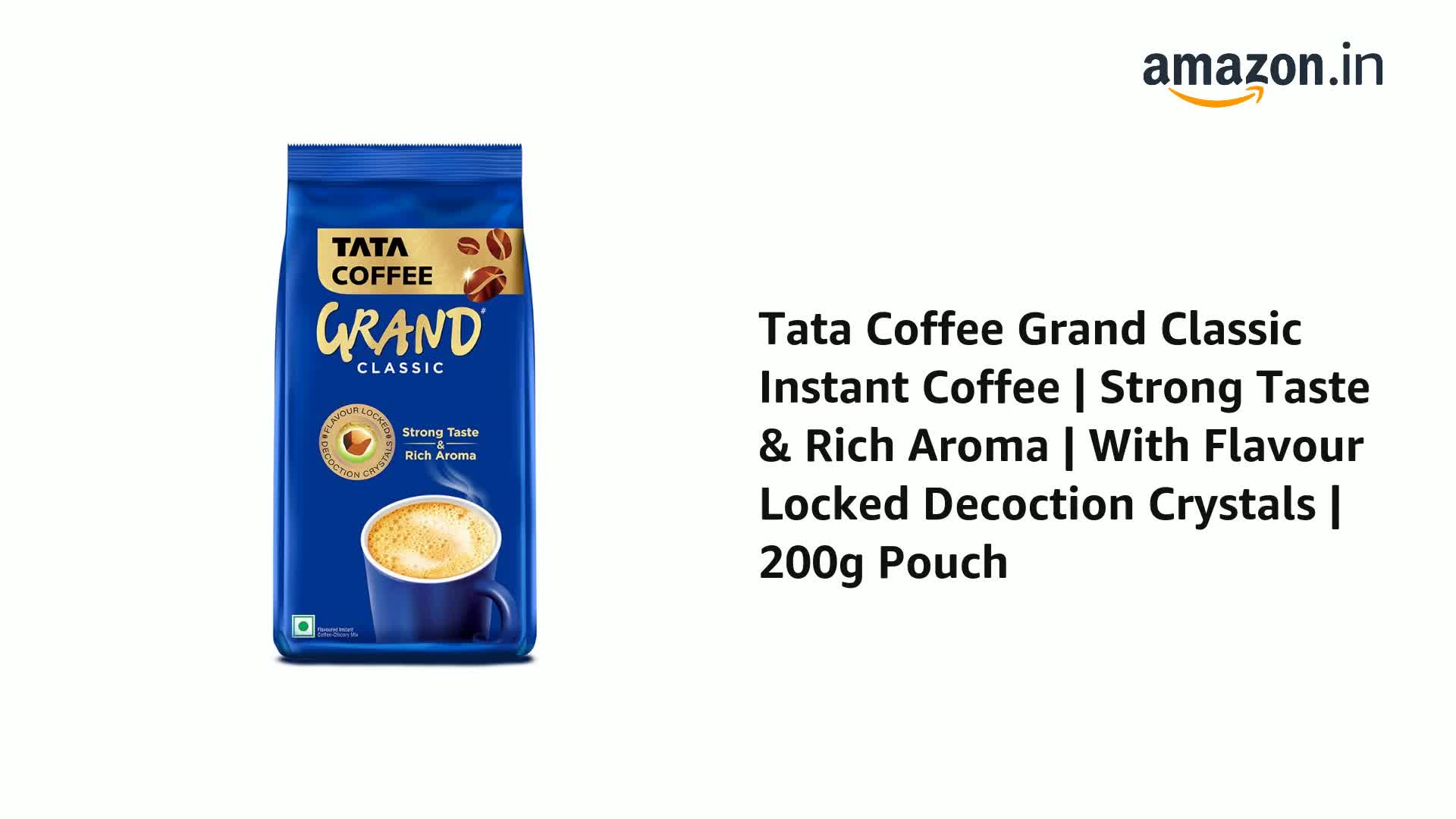 Tata Coffee Grand Classic Instant Coffee | Strong Taste & Rich Aroma | With Flavour Locked Decoction Crystals | 200g Pouch