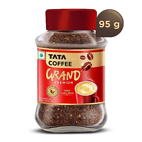 HomeGroceryBeveragesCoffeeTata Coffee Grand Premium Instant Coffee|100G Jar Powder & Tata Coffee Grand Classic Instant Coffee| With Flavour Locked Decoction Crystals | 95g Jar