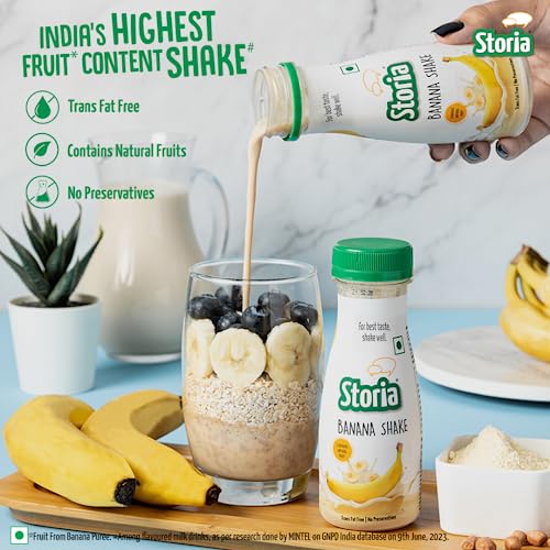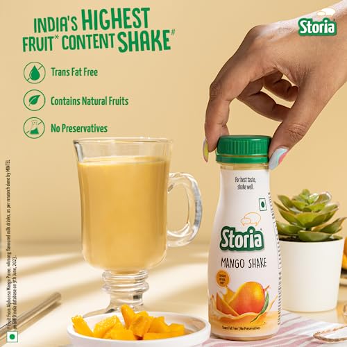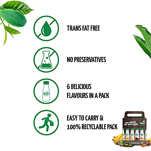 HomeGroceryBeveragesJuicesStoria Assorted Pack of Milkshakes- India's Highest Fruit Content Shake-Transfat Free & No Preservatives- Pack of (6 X 180ml) PET Bottle