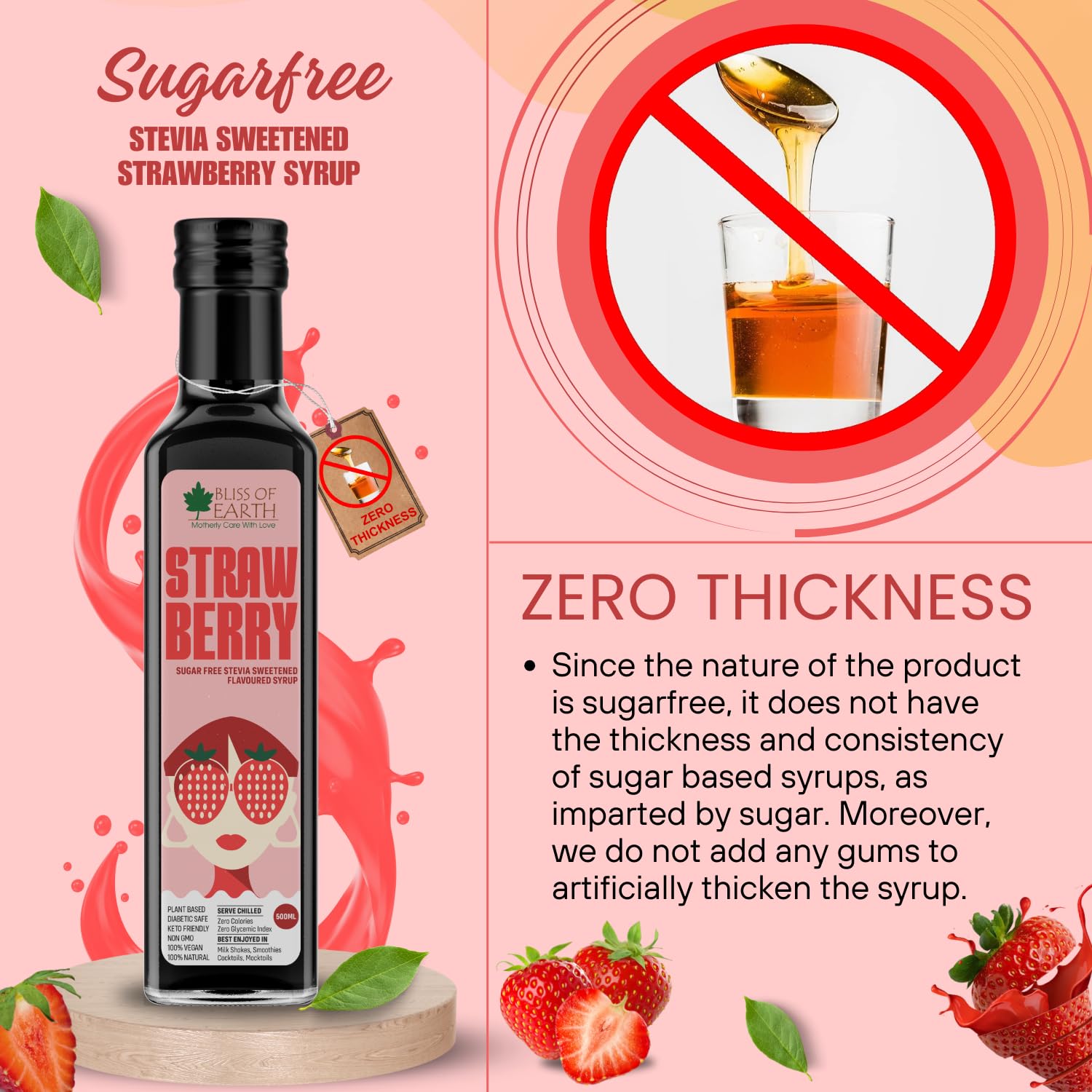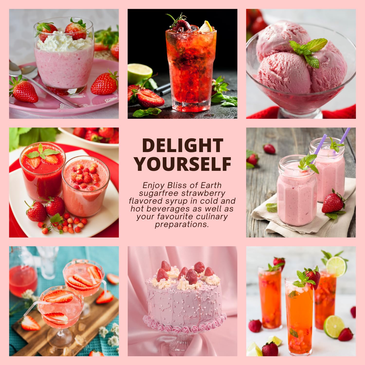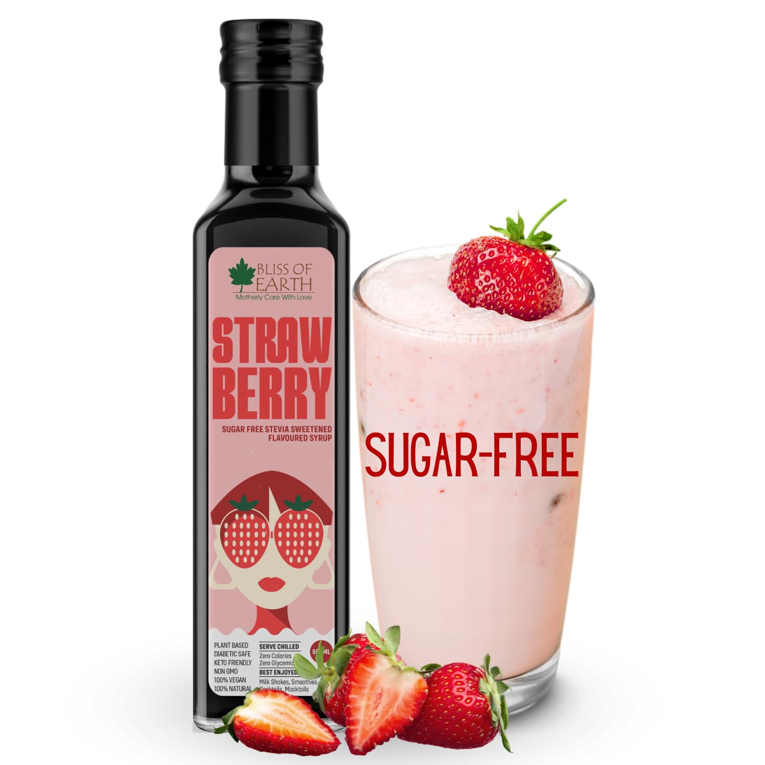 Bliss of Earth Strawberry Sugar free Syrup For Strawberry Shake Lassi Mocktail Diabetic Safe Zero Calorie Keto. No Artificial Flavour. 500ml